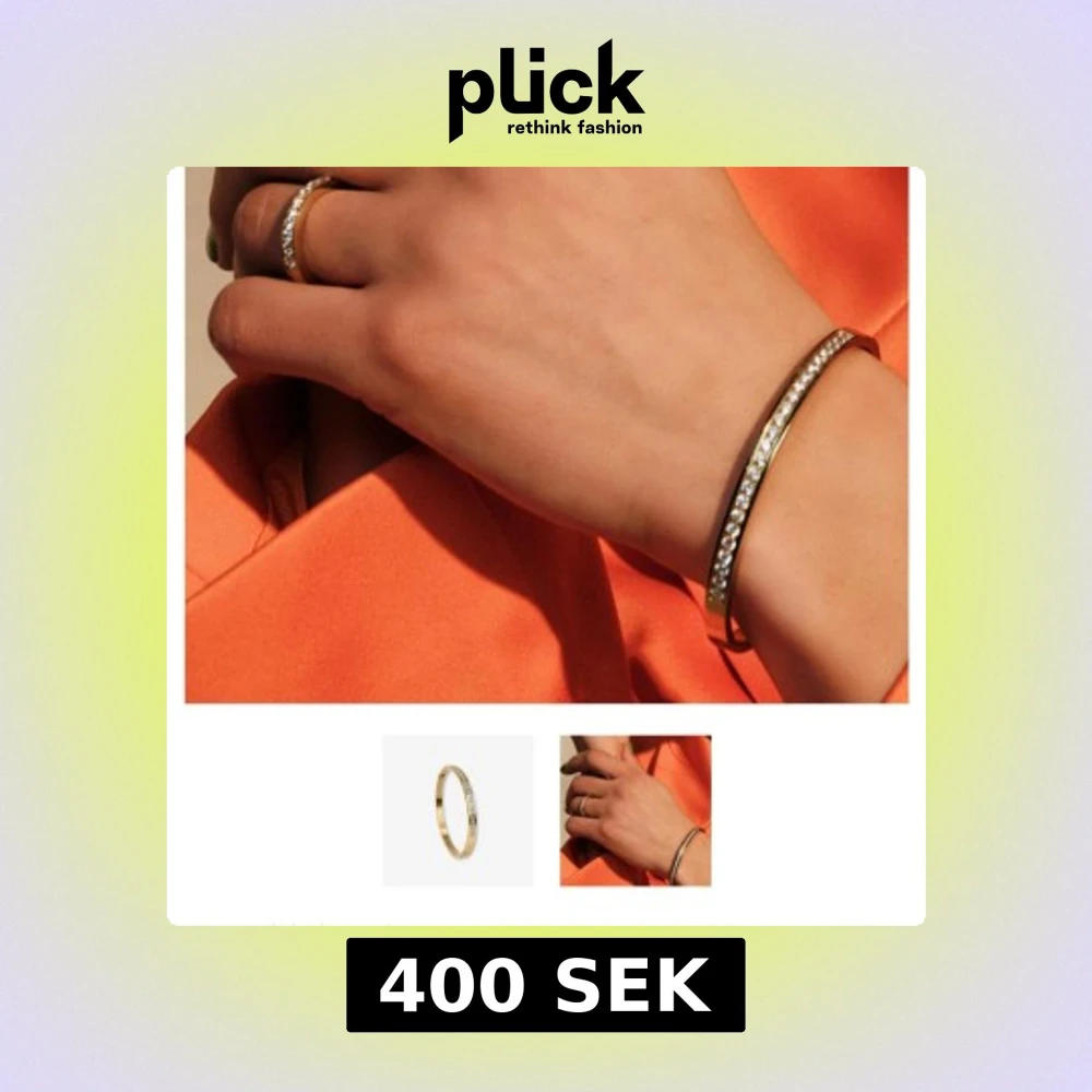 Snyggt guldigt armband från Astrid & Agnes i rostfritt stål, dekorerat med en rad gnistrande vita stenar längs hela ovansidan. Stilren och modern design som verkligen poppar till din look.