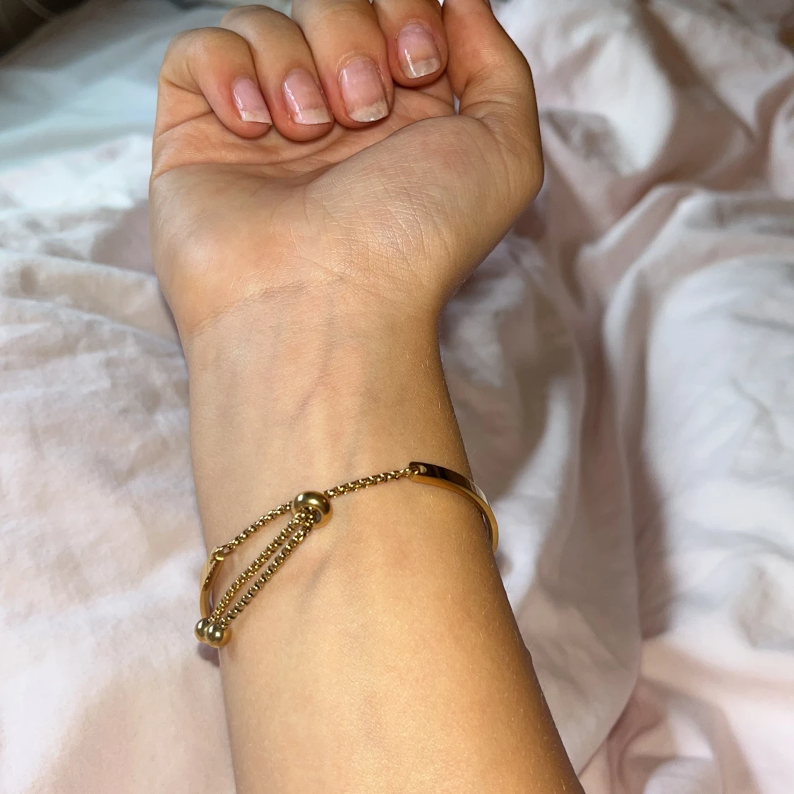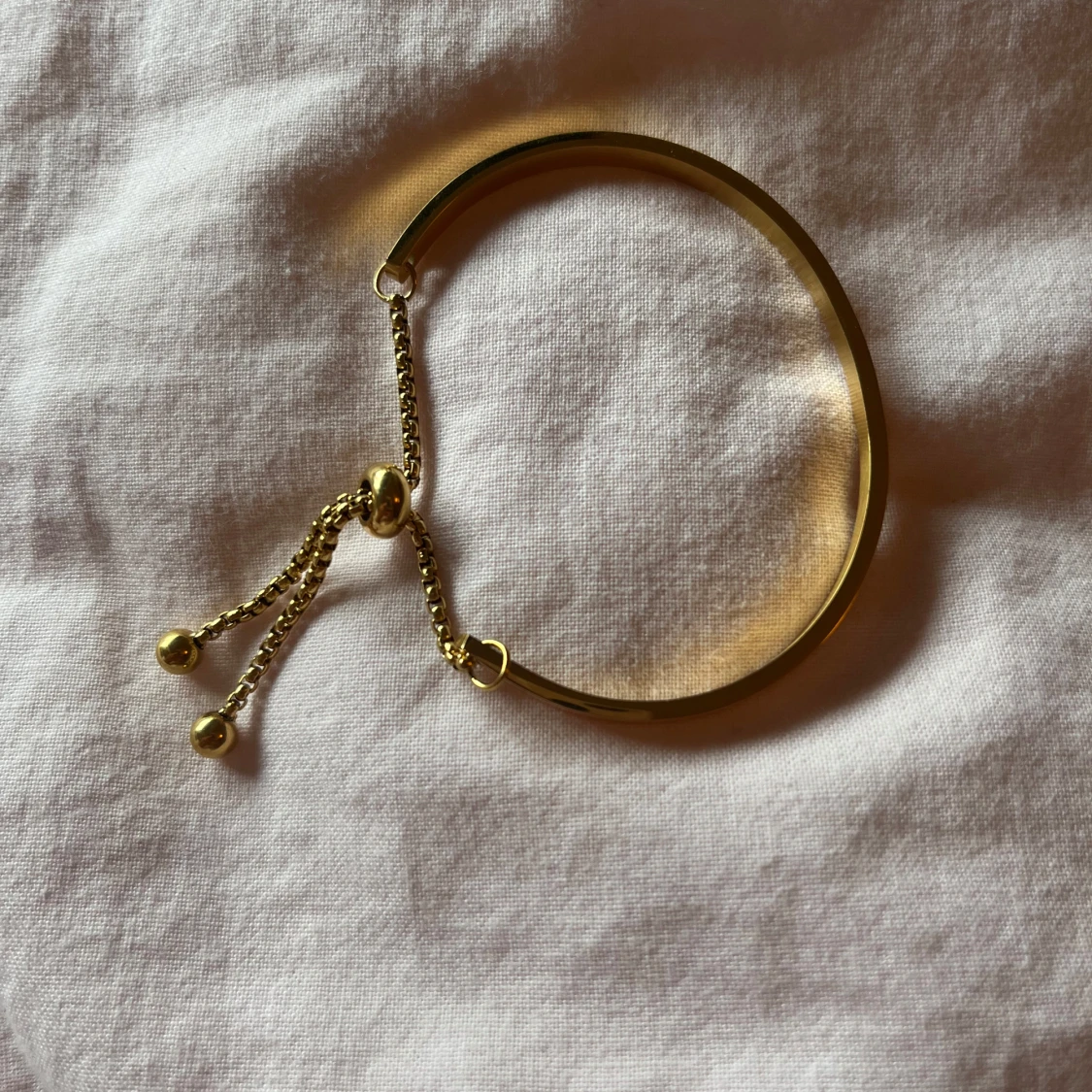 Snyggt justerbart armband i guld som liknar Coach armandetđđ Perfekt accessoar för att lyfta vilken outfit som helst. Enkel att ta pĂ„ och av tack vare den smidiga justeringen. Helt ny đ