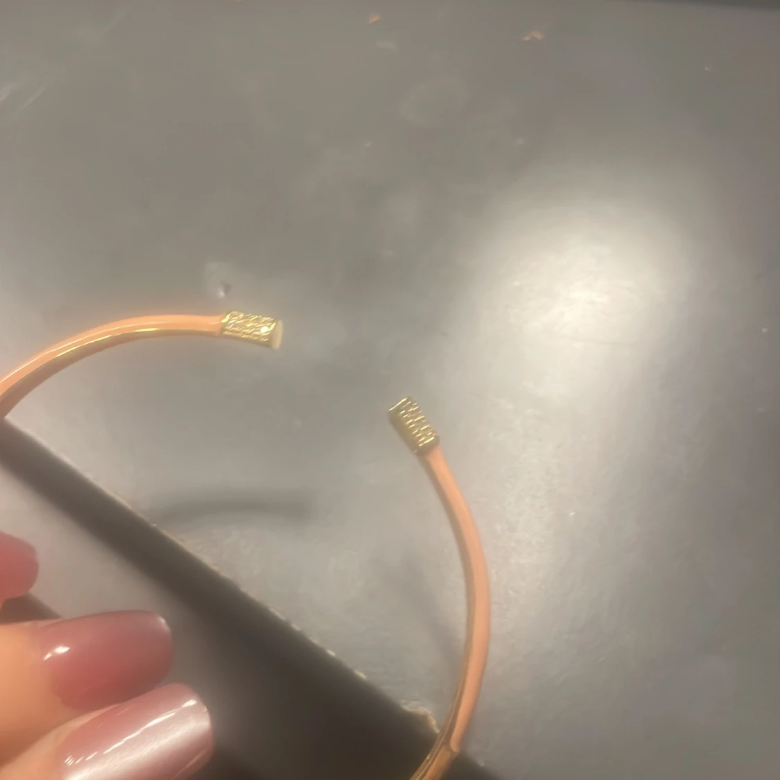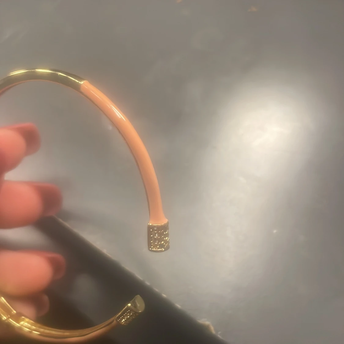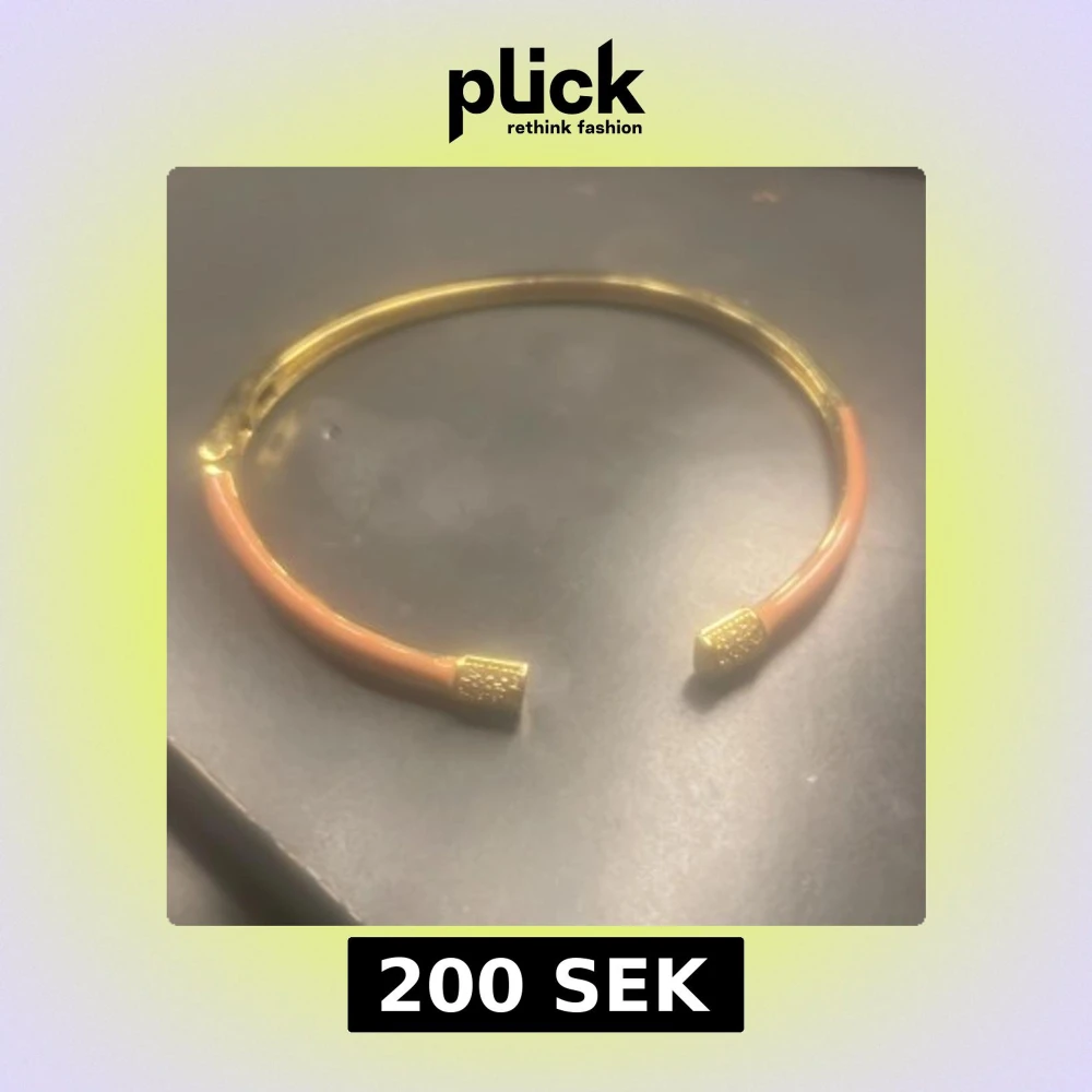 Snyggt armband i guldton med persikofärgad detalj och dekorativa guldiga ändar. Rostfri stål
