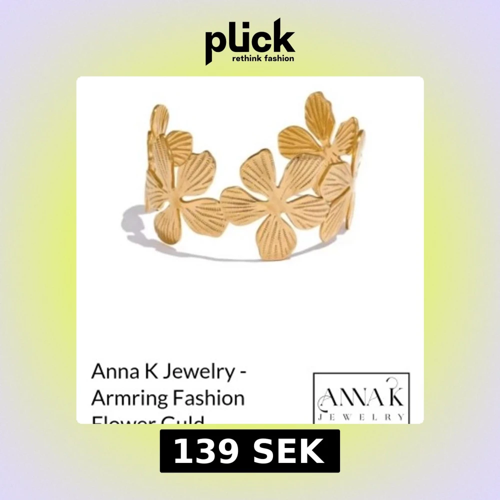 Snyggt armband i guld från Anna K Jewelry med ett unikt blommigt mönster. Armbandet har öppet utförande och är dekorerat med flera detaljerade blommor som ger en cool och trendig vibe. Perfekt för dig som vill sticka ut med dina accessoarer.