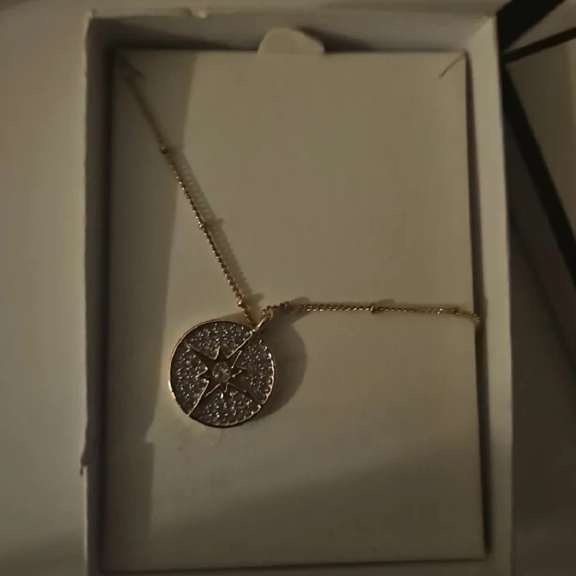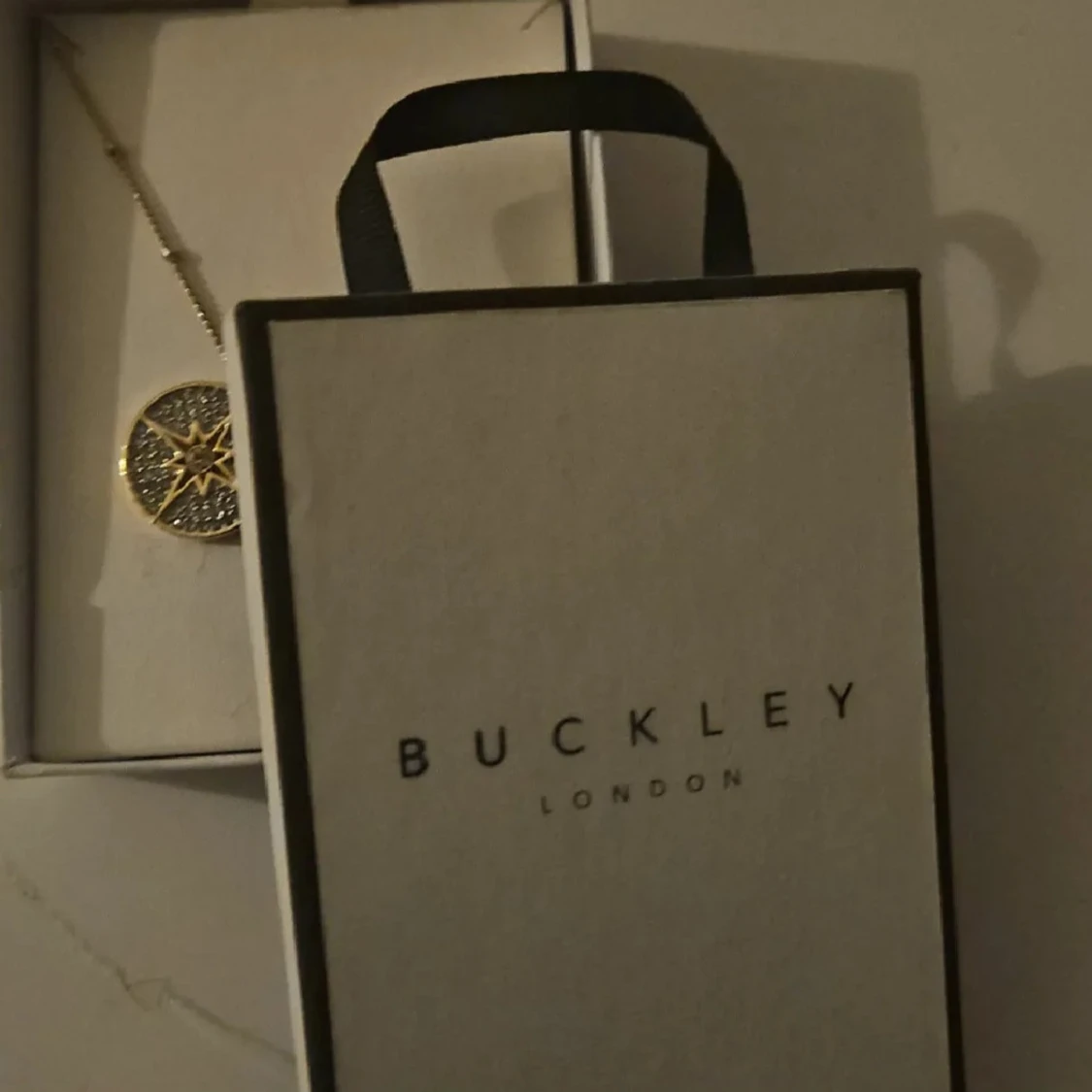 Snyggt halsband från Buckley London med ett runt guldigt hänge dekorerat med en stjärna och glittrande stenar. Kedjan är tunn och elegant, perfekt för att lyfta vilken outfit som helst. Kommer i originalförpackning.