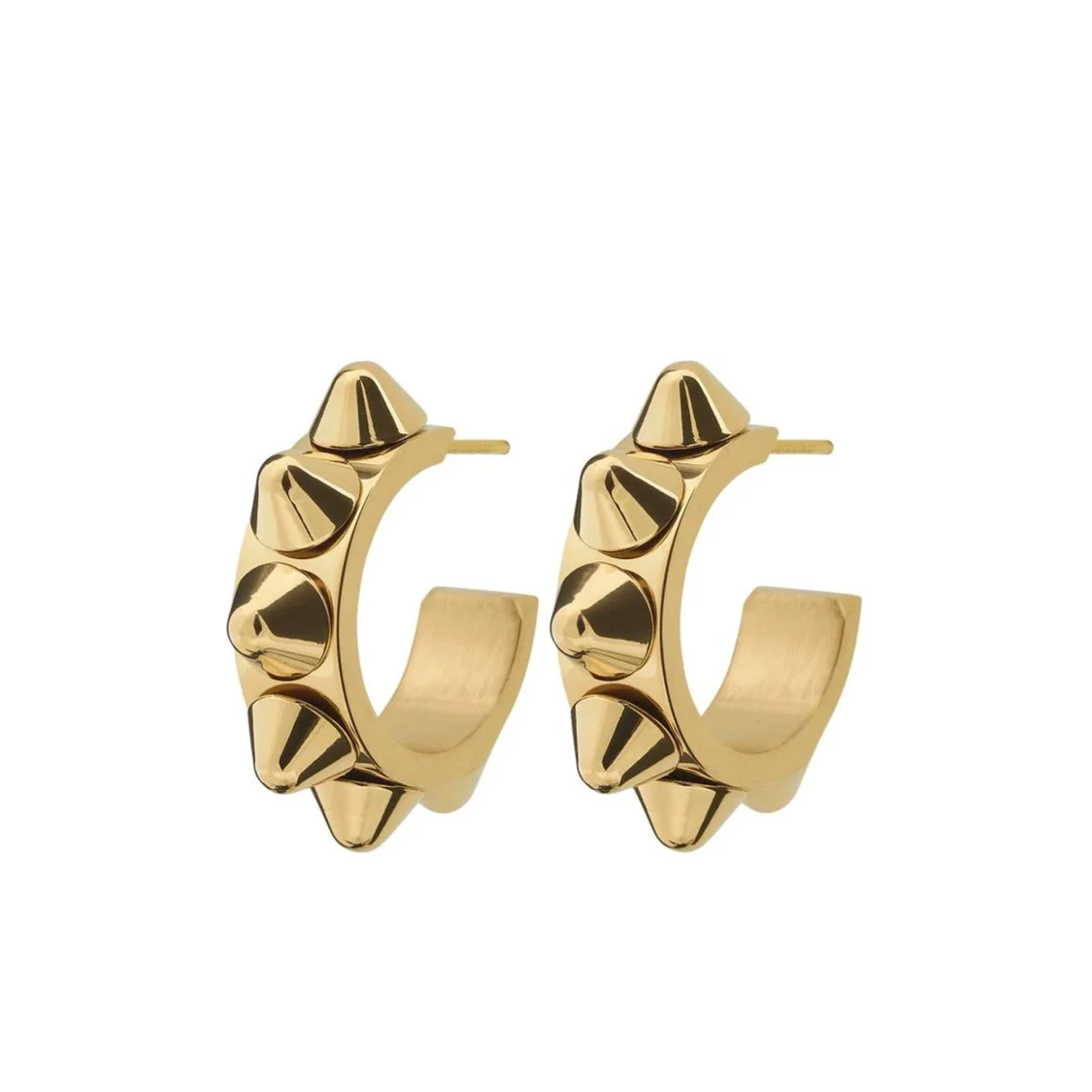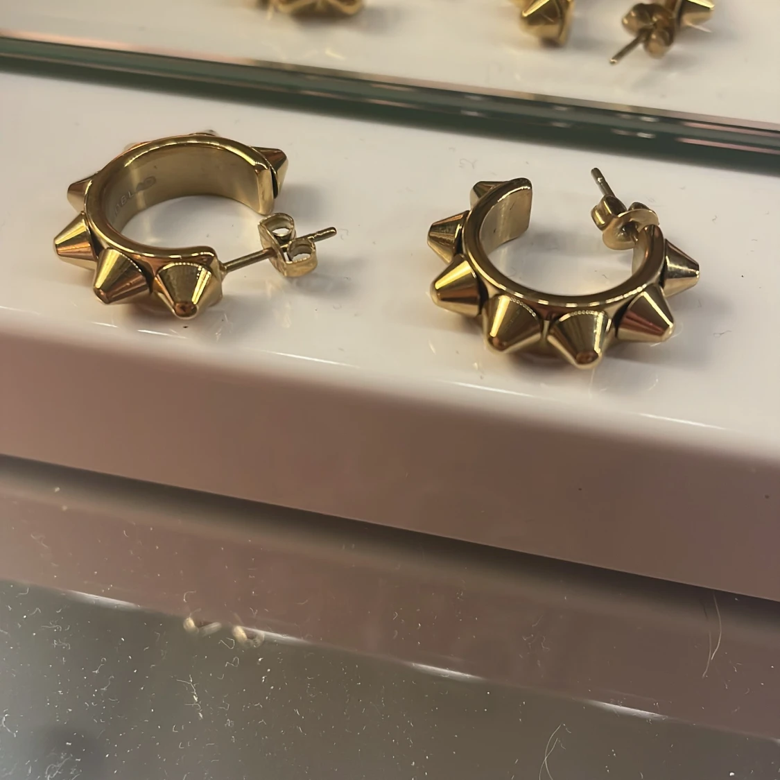 Snygga guldörhängen med nitar. Perfekta för att addera lite attityd till din outfit. Örhängena är från Edblad och är köpta nyligen.