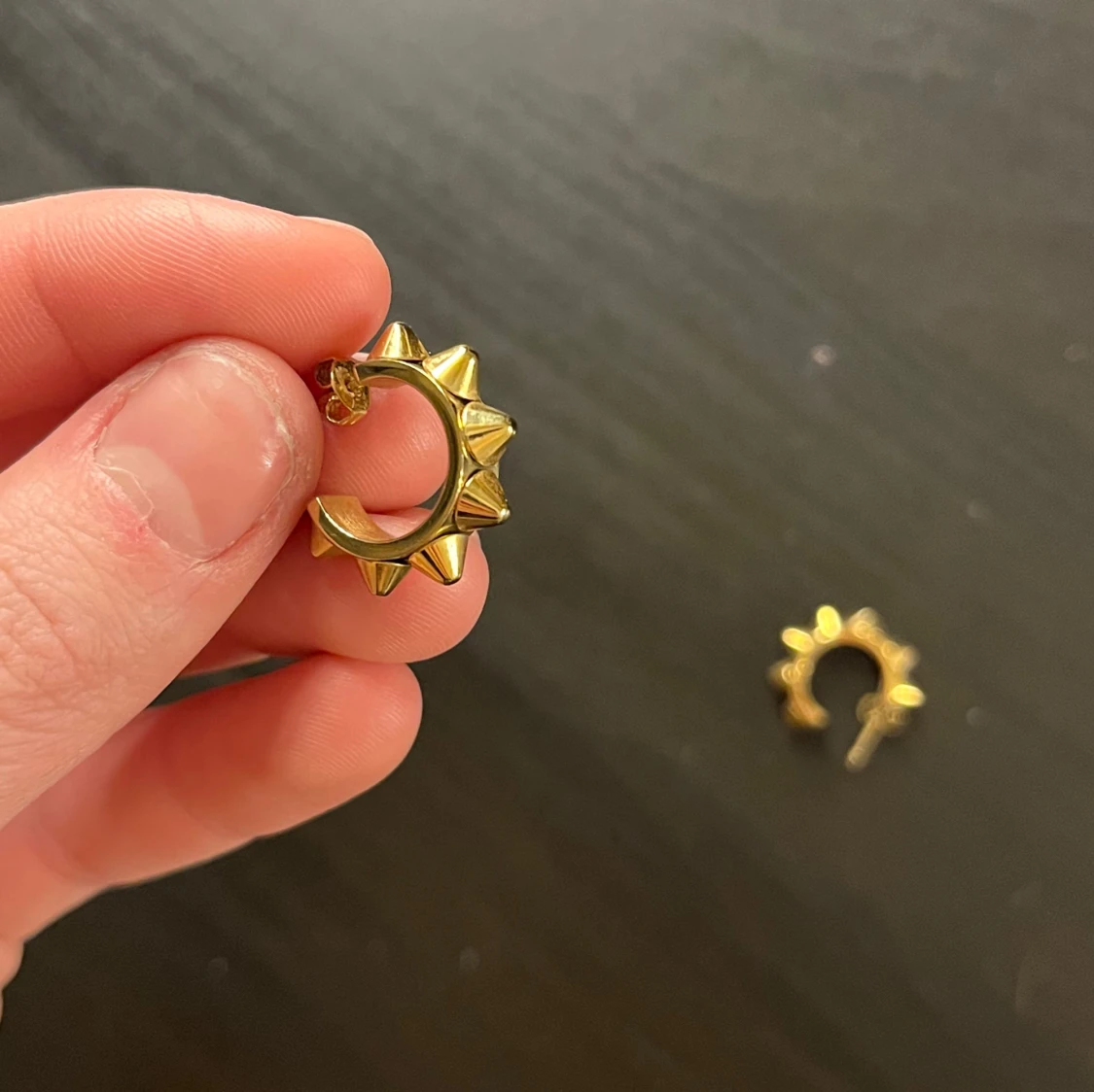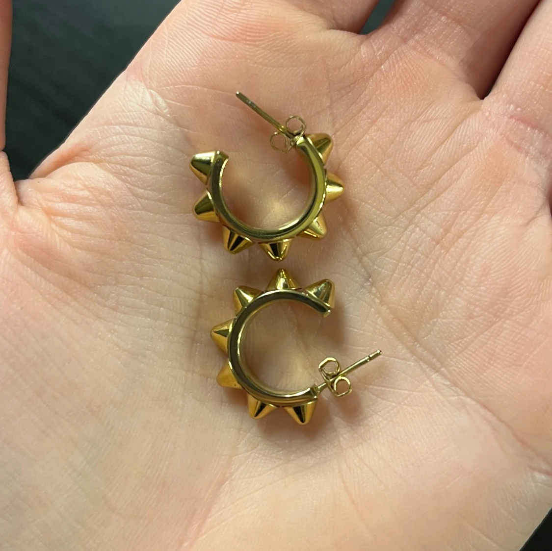 Snygga guldörhängen med nitar i en cirkulär design från Edblad. Perfekta för att ge en edgy touch till din stil. De är små och lätta, vilket gör dem bekväma att bära hela dagen.