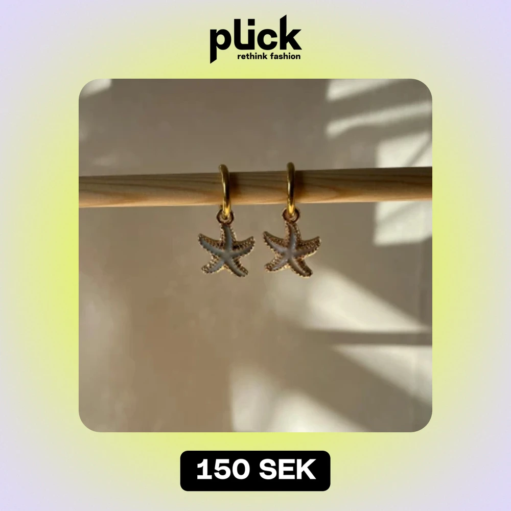 Säljer ett par superfina guldörhängen med hängande sjöstjärnor. De är perfekta för att ge en somrig touch till din outfit. Sjöstjärnorna har en fin detaljering som gör dem unika och de hänger från en enkel guldring. Helt nya! Handgjorda