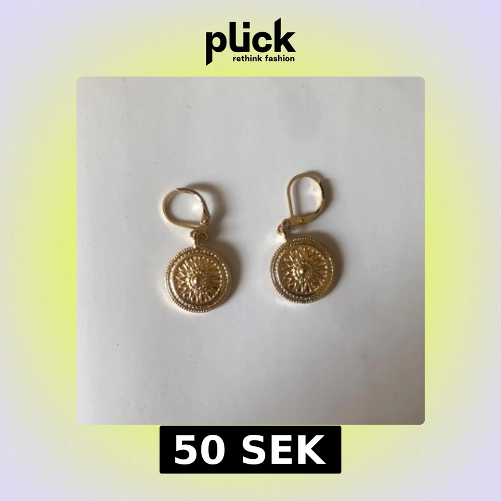 Snygga guldörhängen med ett detaljerat solmönster. Aldrig använd.