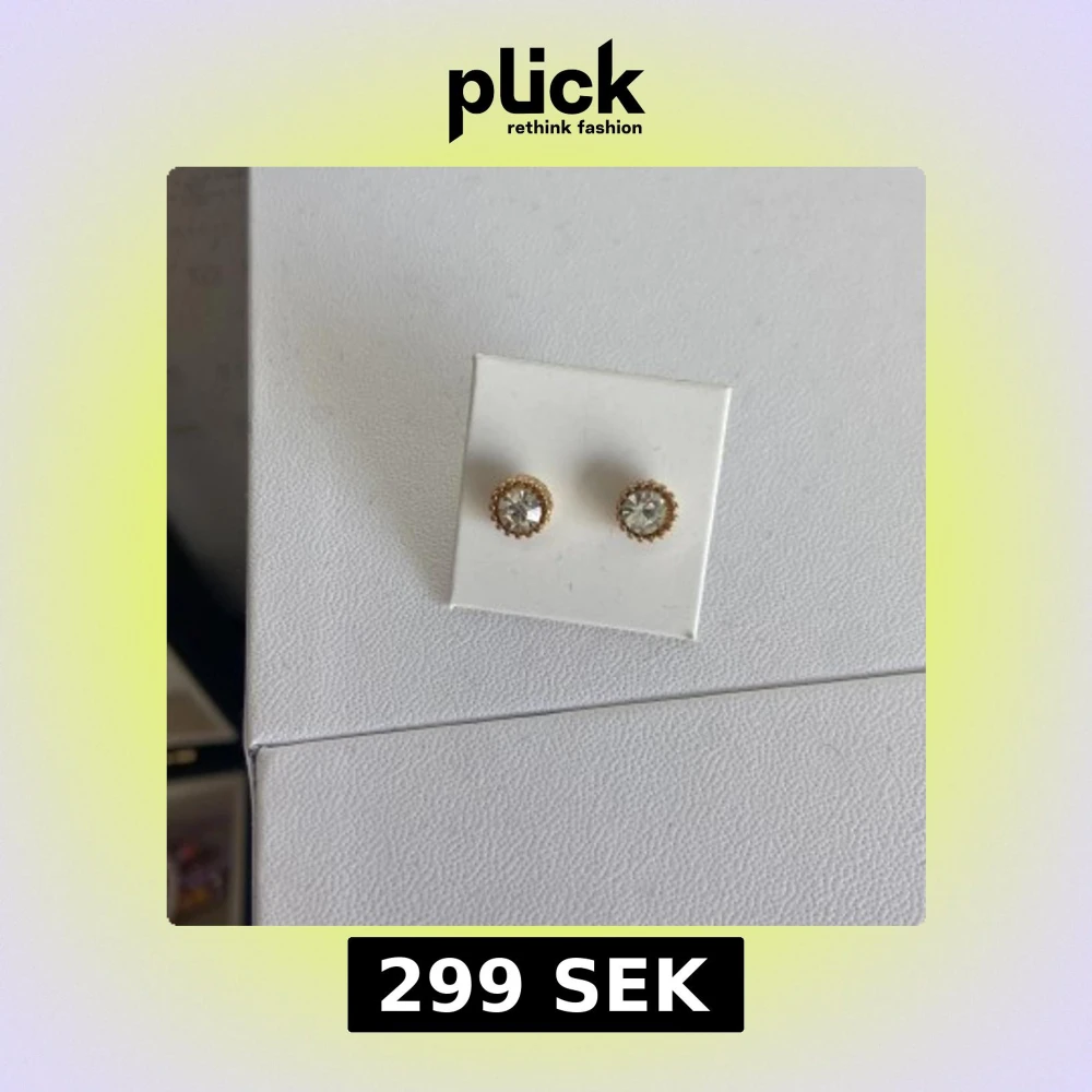 Säljer ett par eleganta guldpläterade örhängen från Syster P med rund, glittrande kristall i mitten. Perfekta för att ge en touch av lyx till din stil. Levereras i originalpåse.