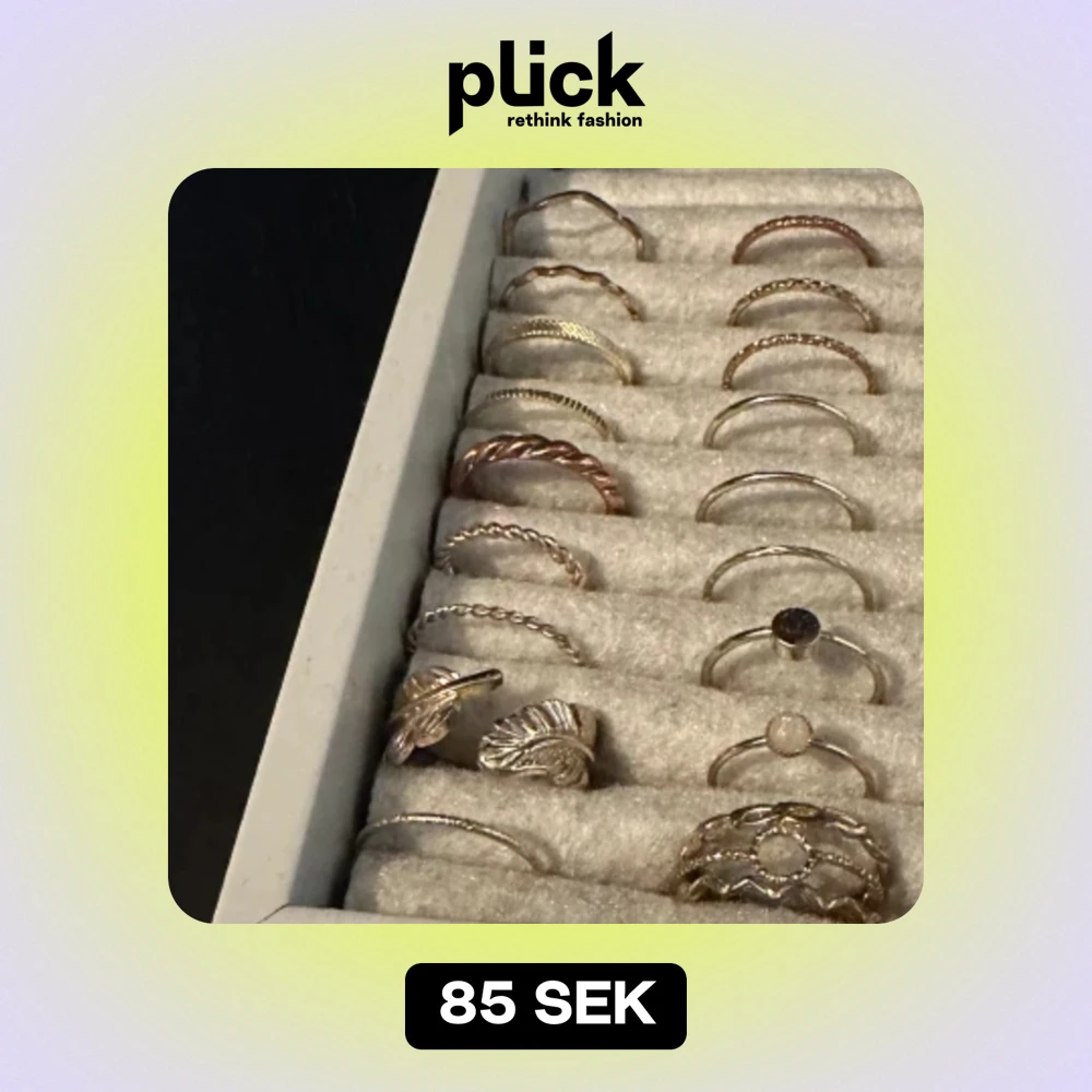 18 stycken guldringar från hm. Färgen är lite otydlig på bilden men de är guldiga