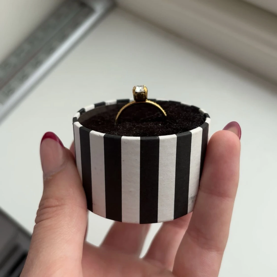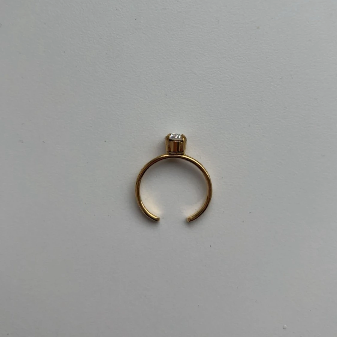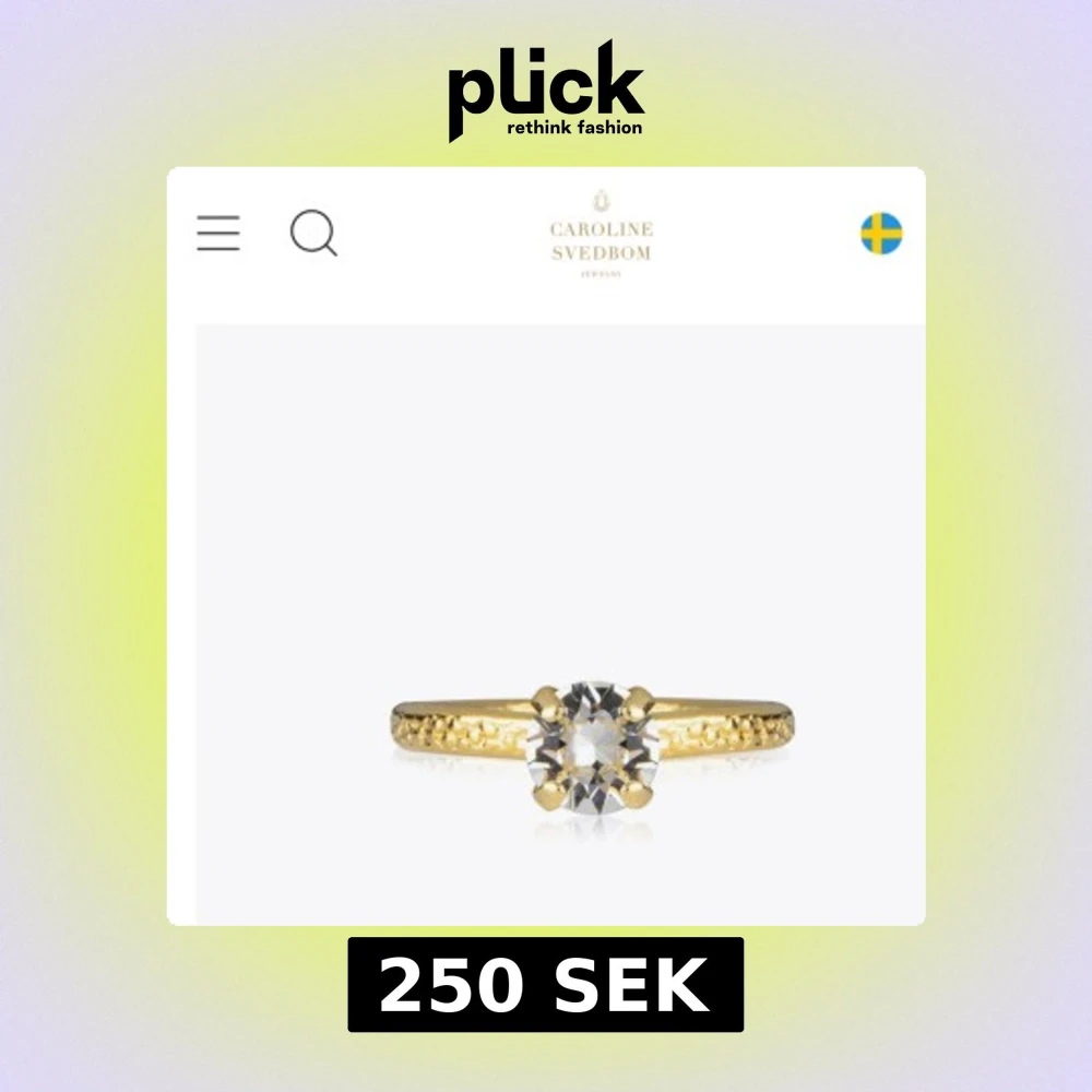Snygg guldfärgad ring från Caroline Svedbom med en stor, klar kristall i mitten. Ringen har en elegant och enkel design med en rund sten som verkligen glittrar. Perfekt för dig som gillar stilrena smycken med lite extra bling. Aldrig använd, nypris 395 🩷