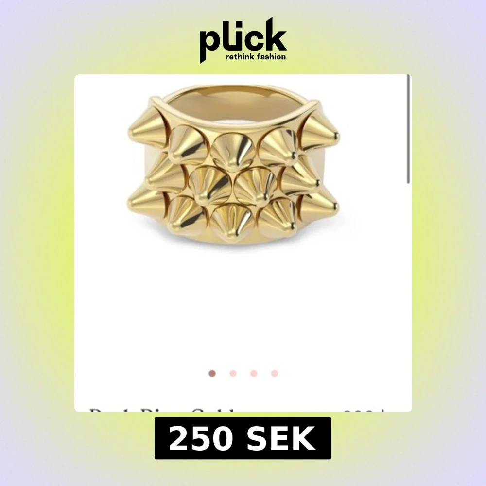 Snygg och iögonfallande ring från Edblad med en modern twist på punkiga nitar. Ringen är guldfärgad med 14K guldplätering och finns i storlek L, 18,5 mm. Perfekt för att göra ett statement! Skriv till mig om ni har några frågor❤️