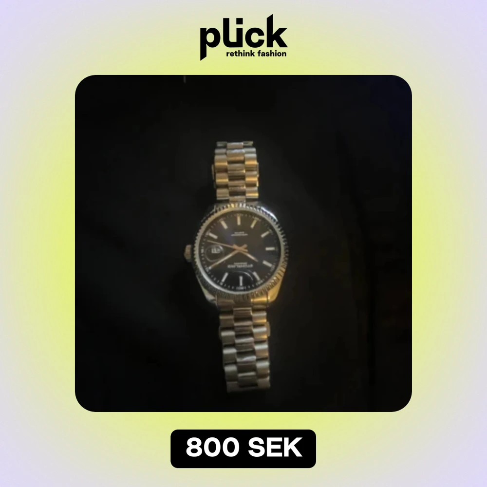 En väldigt snygg klocka i färgen silver med mörkblått inuti köpt för 1600 passar de flesta handlederna men går att ändra storlek i butik annars. Fråga på om ni undrar något