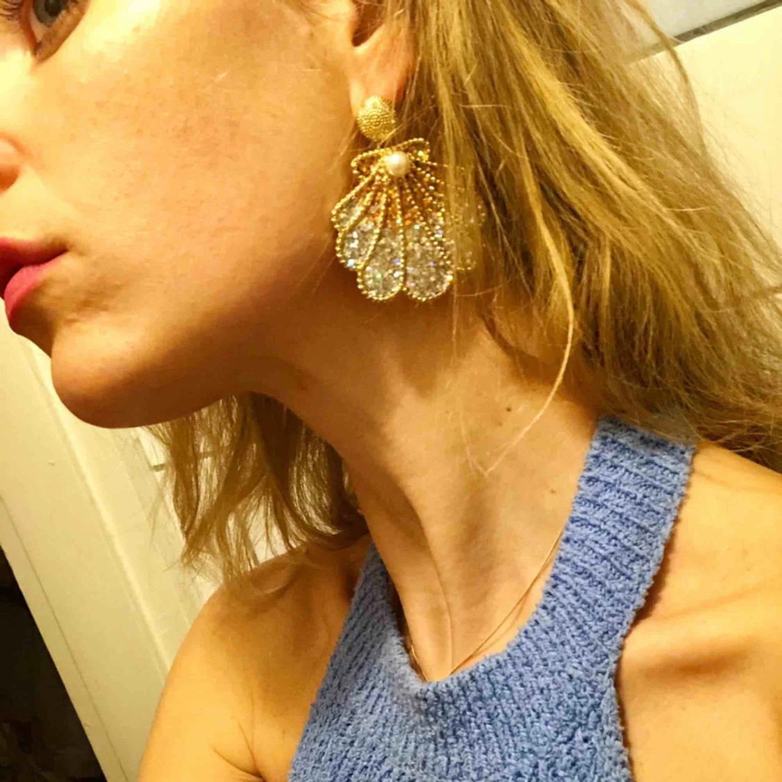 Glittriga snäckformade örhängen använda en gång. Man blir glad av att ha dem på sig 😉