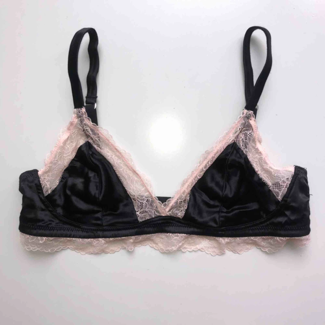 Svart och ljusrosa spetsbh från hm. Storlek 44, men passar mer B-C kupa, S-M. Svart sidenmaterial. Använd en gång. Kan mötas upp eller skicka för 20kr.😊