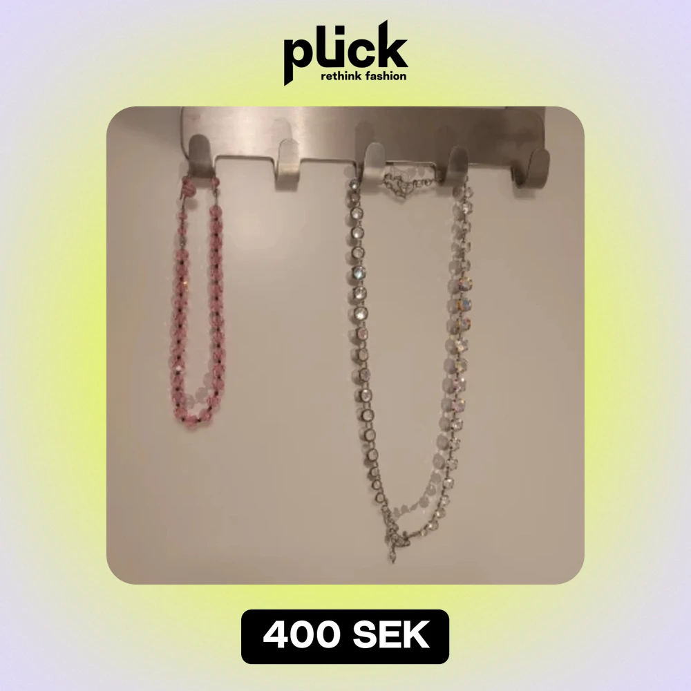 2 st äldre halsband i bra skick. Rosa pärlhalsband 100 kr Kristallhalsband 250 kr