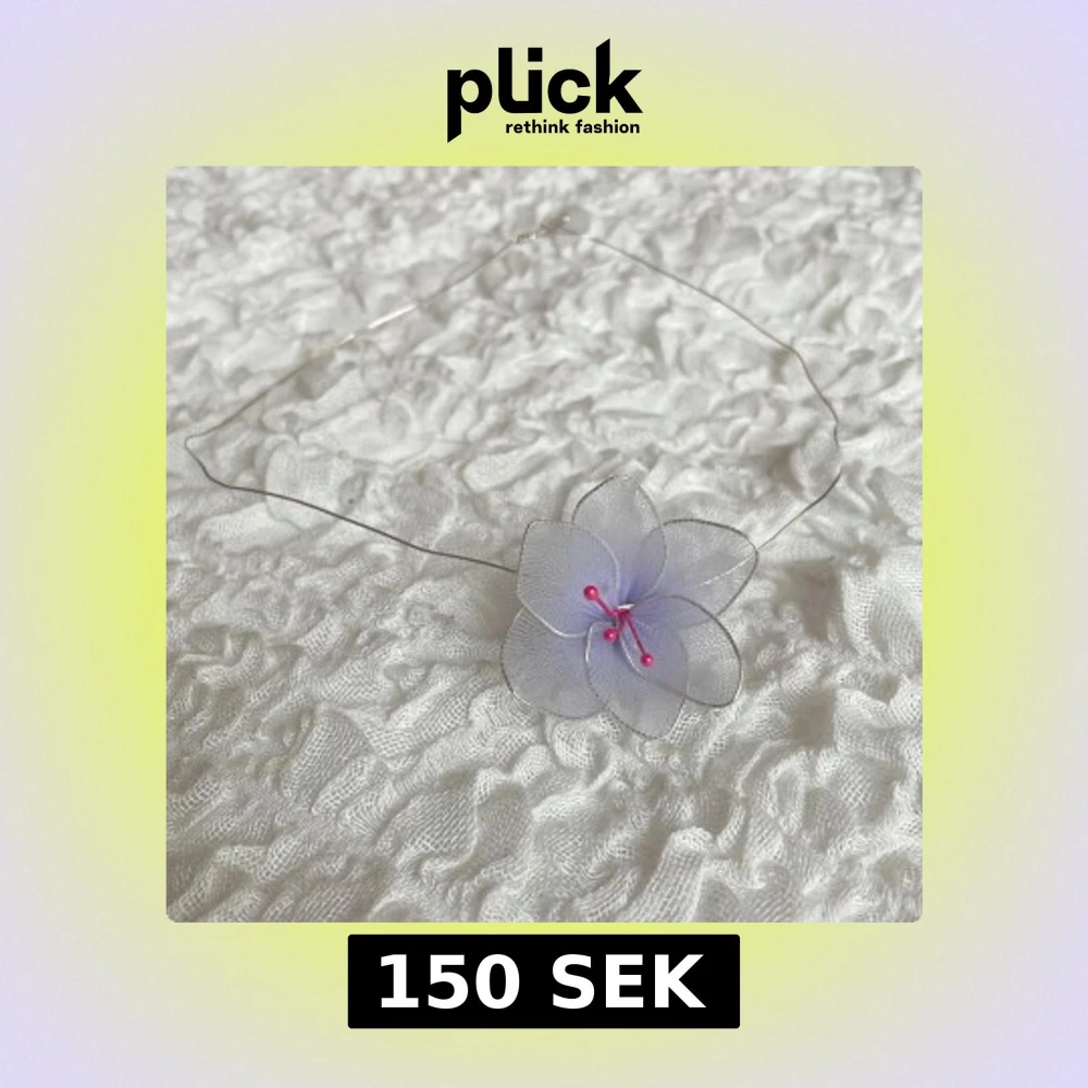 Unikt handgjort halsband med en stor, ljuslila blomma i organza och tunna silverfärgade trådar. Blomman har rosa detaljer i mitten som ger ett lekfullt intryck. Perfekt för dig som vill sticka ut med en söt accessoar.