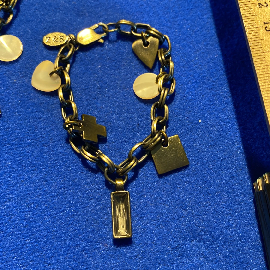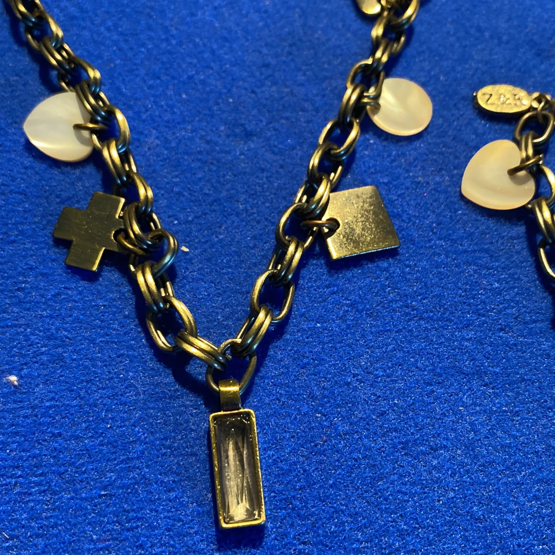 Set med halsband och armband. Kedja med berlocker av snäckor och halvädelsten. Oanvänt