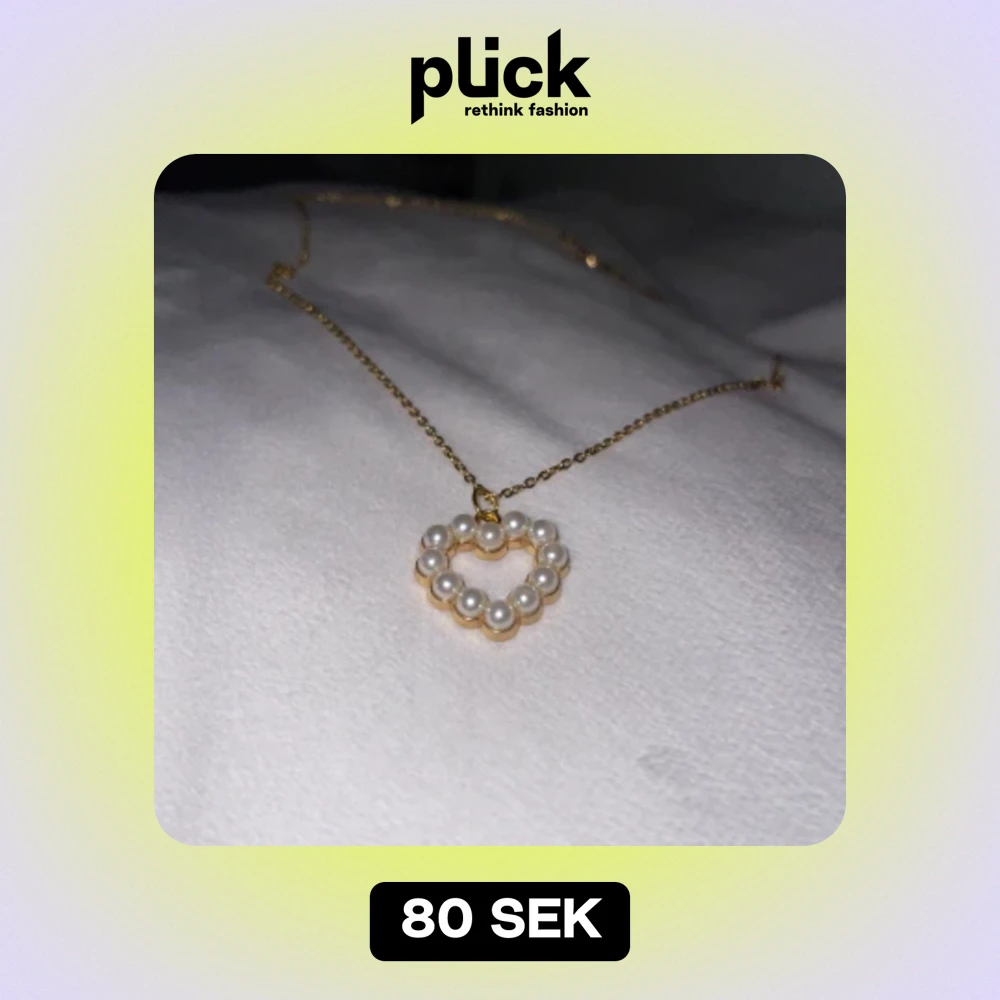 Handgjort guldfärgat halsband i rostfritt stål, hjärthänge med pärlor. 🤍Kolla gärna resten av mina annonser för samfrakt.