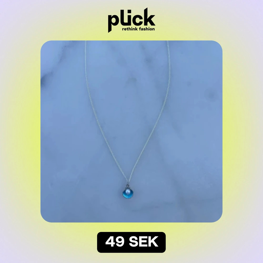 Ett silvrigt halsband med en blå snäcka🤍 Size: S, 35cm (Justerbar, kedja av mässing)