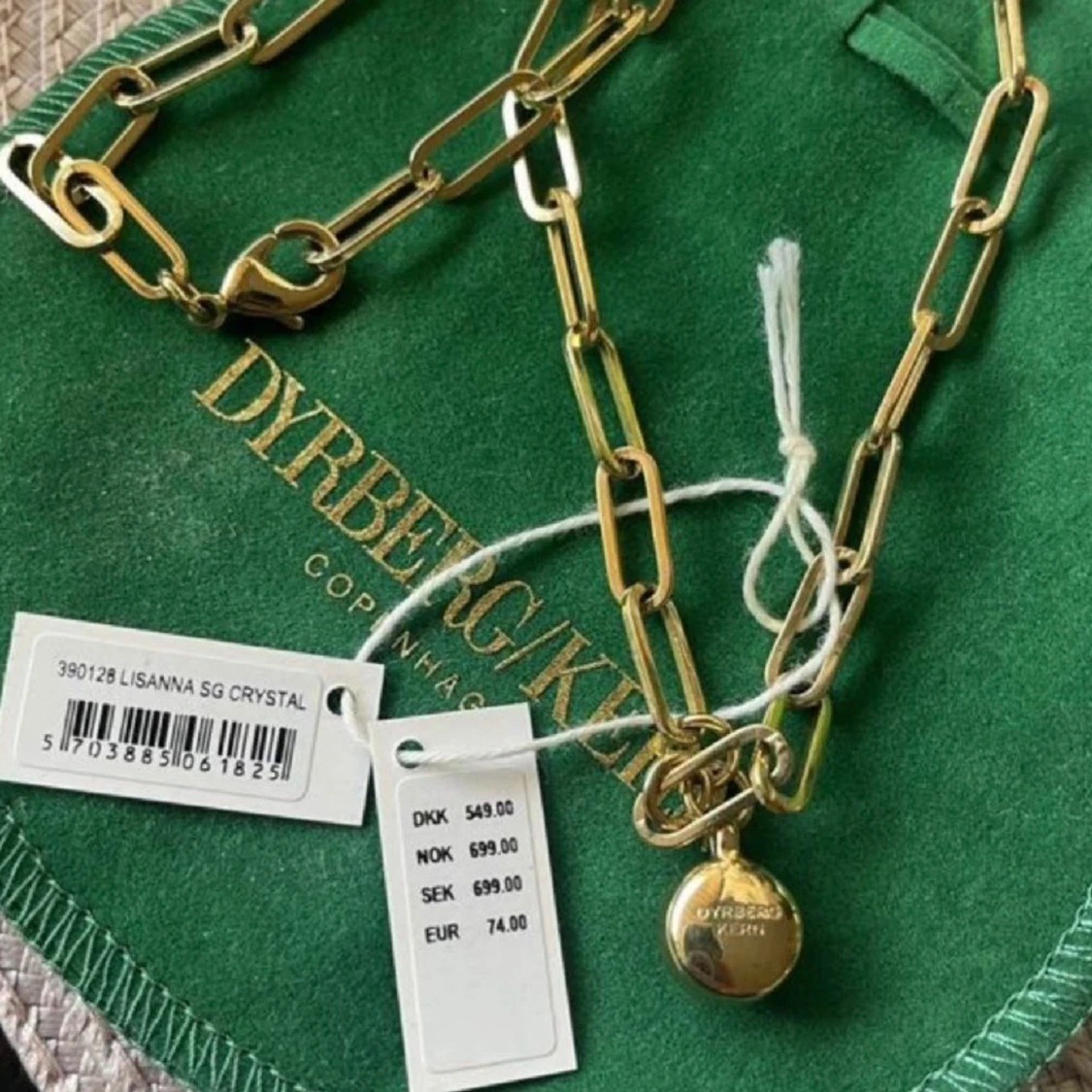 Halsband från dyrberg kern LISANNA klassikt snyggt mycket användbart halsband med en lite kraftigare kedja i stål. Hänge med en klar kristall. L42 cm Dansk design. nickelfritt Helt ny och oanvänd