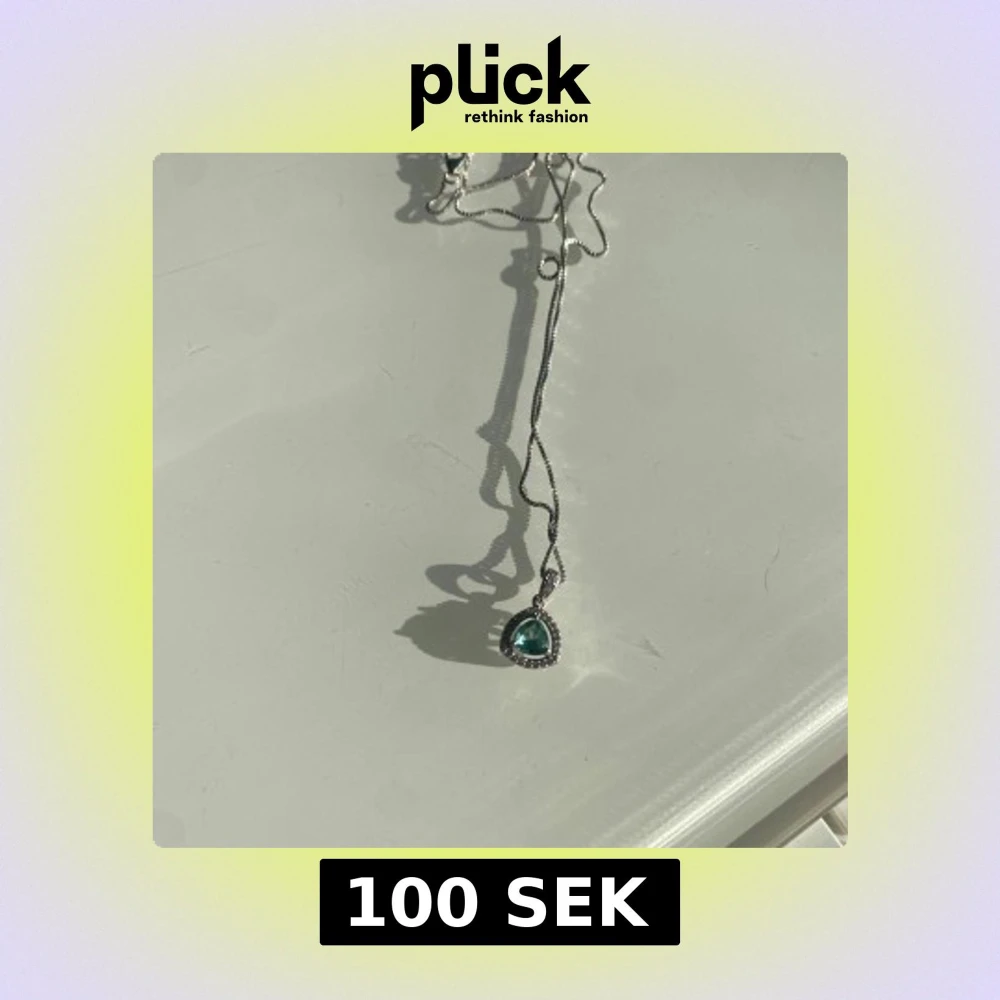 Elegant halsband med en triangulär turkos sten infattad i en silverfärgad ram. Kedjan är tunn och justerbar
