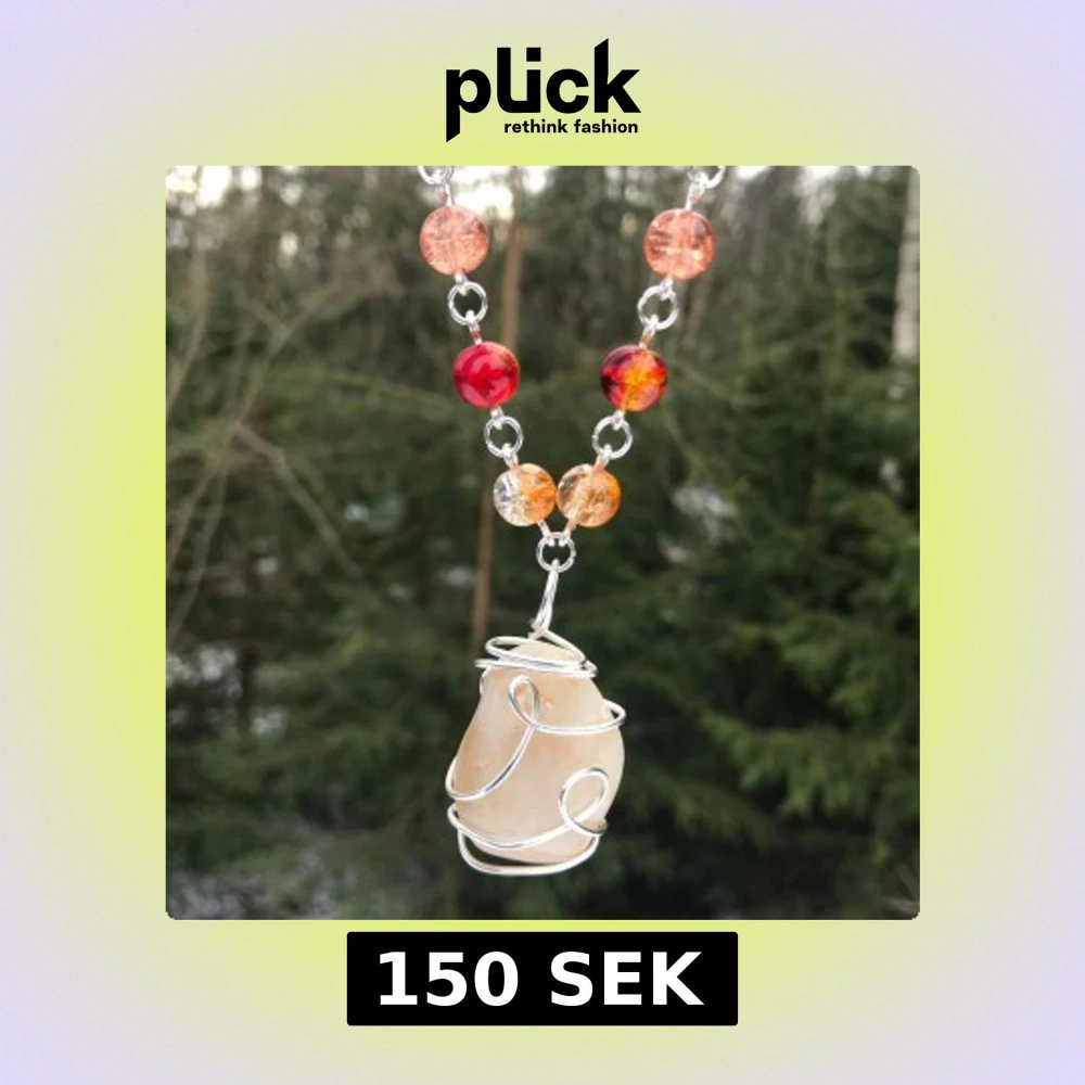 Halsband av en wire-wrapped sten och eldfärgade glaspärlor 🔥✨🌄