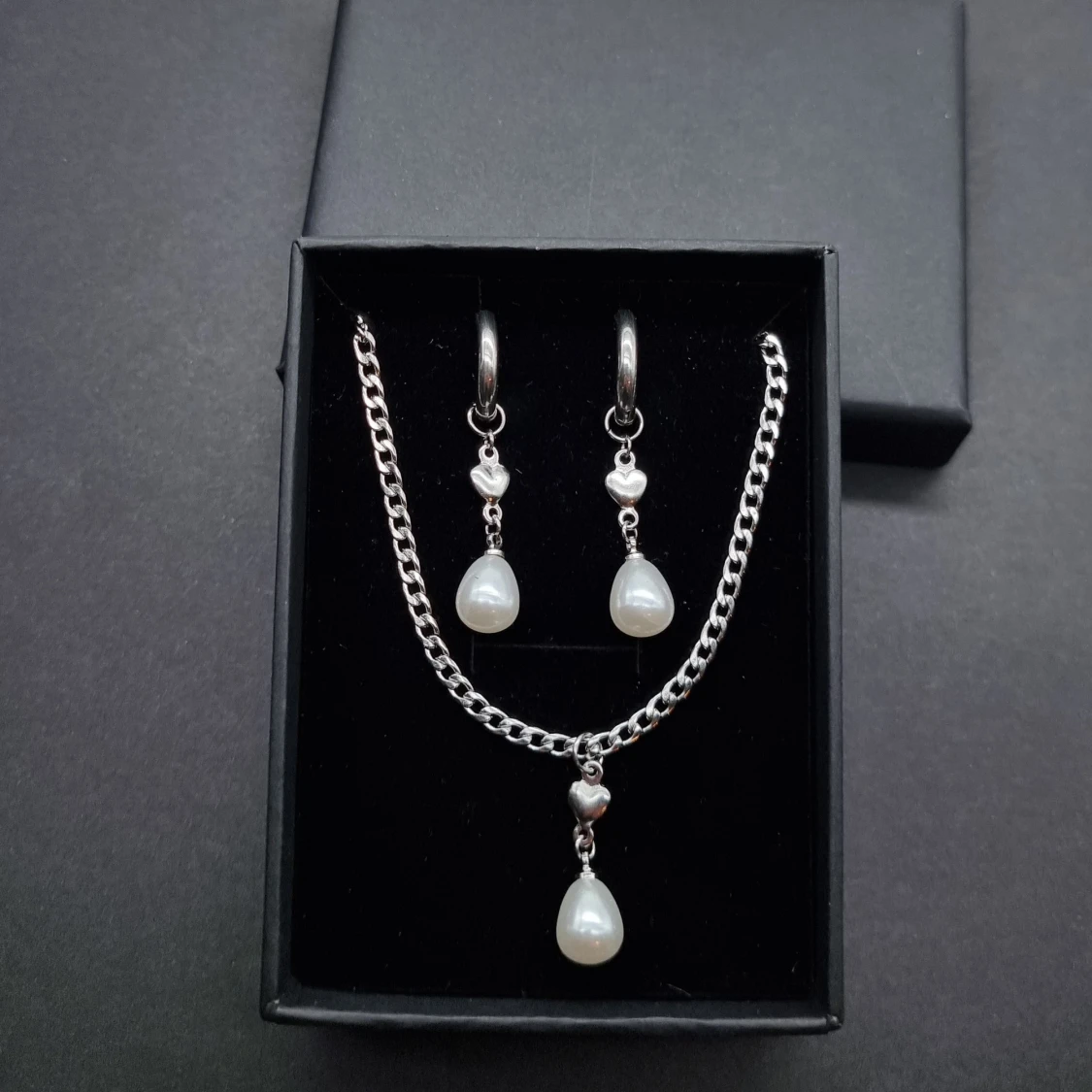 Rostfritt stål. Halsband längd-40cm,örhängen längd-4cm