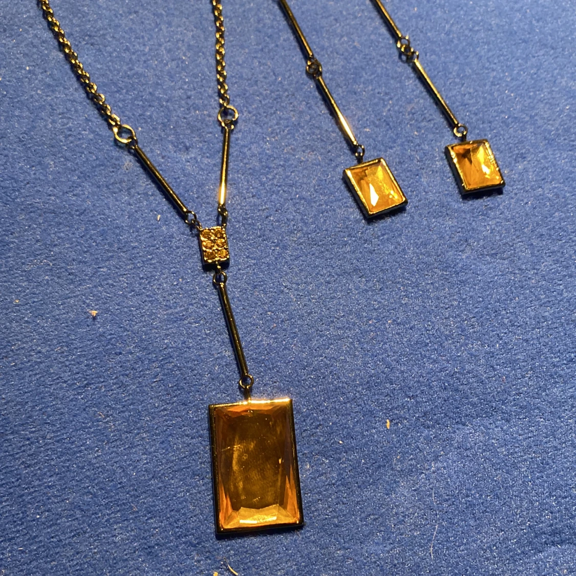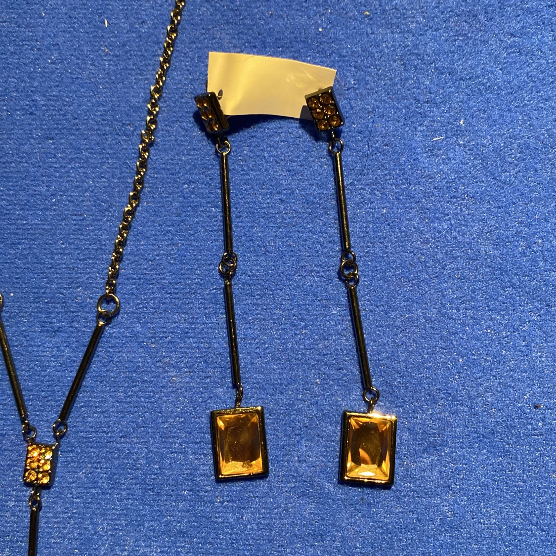 Ett vackert, stilrent set med stor sten i spegelglas och swarovskicrystal