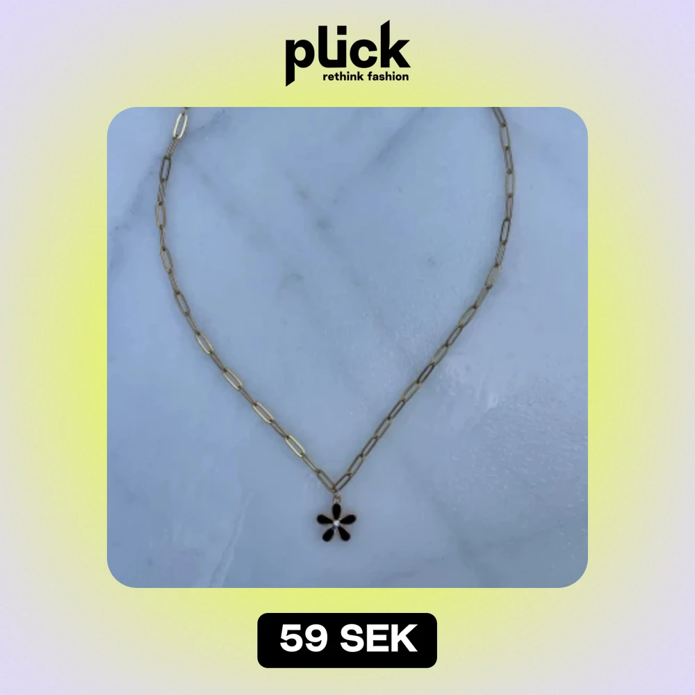 Ett guldigt halsband med en svart blommađ Size: M, 40cm (Kedja gjort av rostfritt stĂ„l)