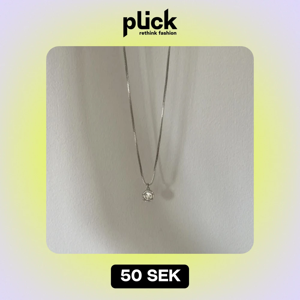 Ungefär 40cm nyskick, silvrigt halsband med glittrig berlock.