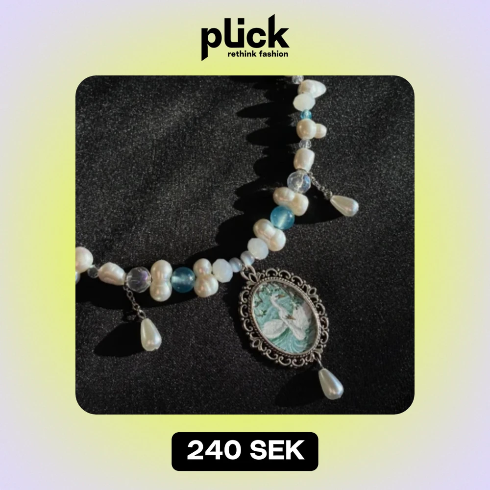 Halsband gjort av glaspärlor & sötvattenspärlor, med en berlock jag målat🦢🪷 reglerbar längd 38-43cm Kika in min instagram @flyingladybugz för mer smycken💗🐞