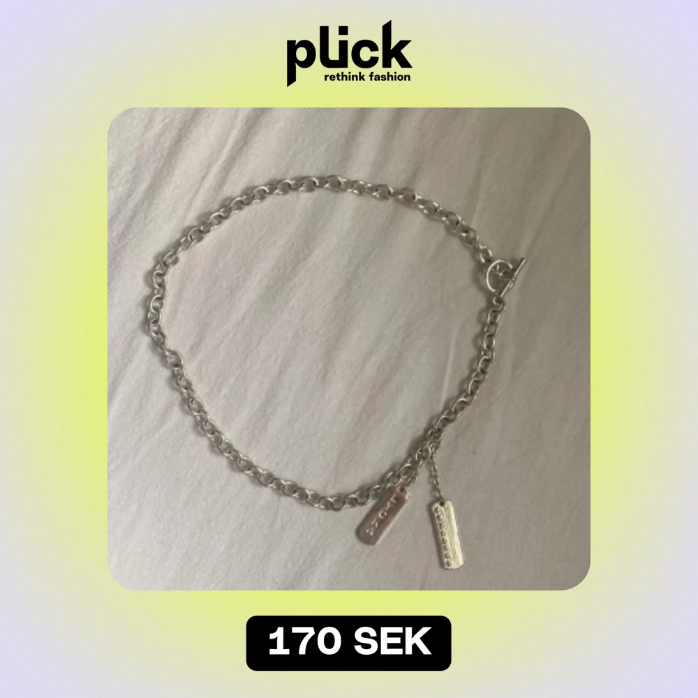 Chunky silver halsband med ”lycka” på och stenar, väldigt fin men är inte min smak.