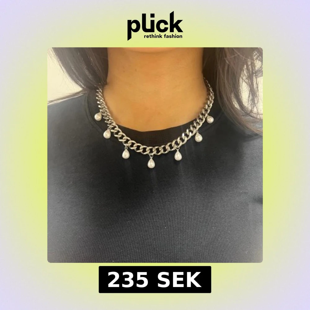 .Silvrigt halsband med pärlor Presentask ingår. Det finns möjlighet att köpa utan presentask till ett lägre pris (se en annan annons på min sida). Matchande örhängen finns i en separat annons Finns även i guldpläterad variant. Material: Rostfritt stål Bredd: 9 mm Längd: 38–43 cm Nickelfria och handgjorda.