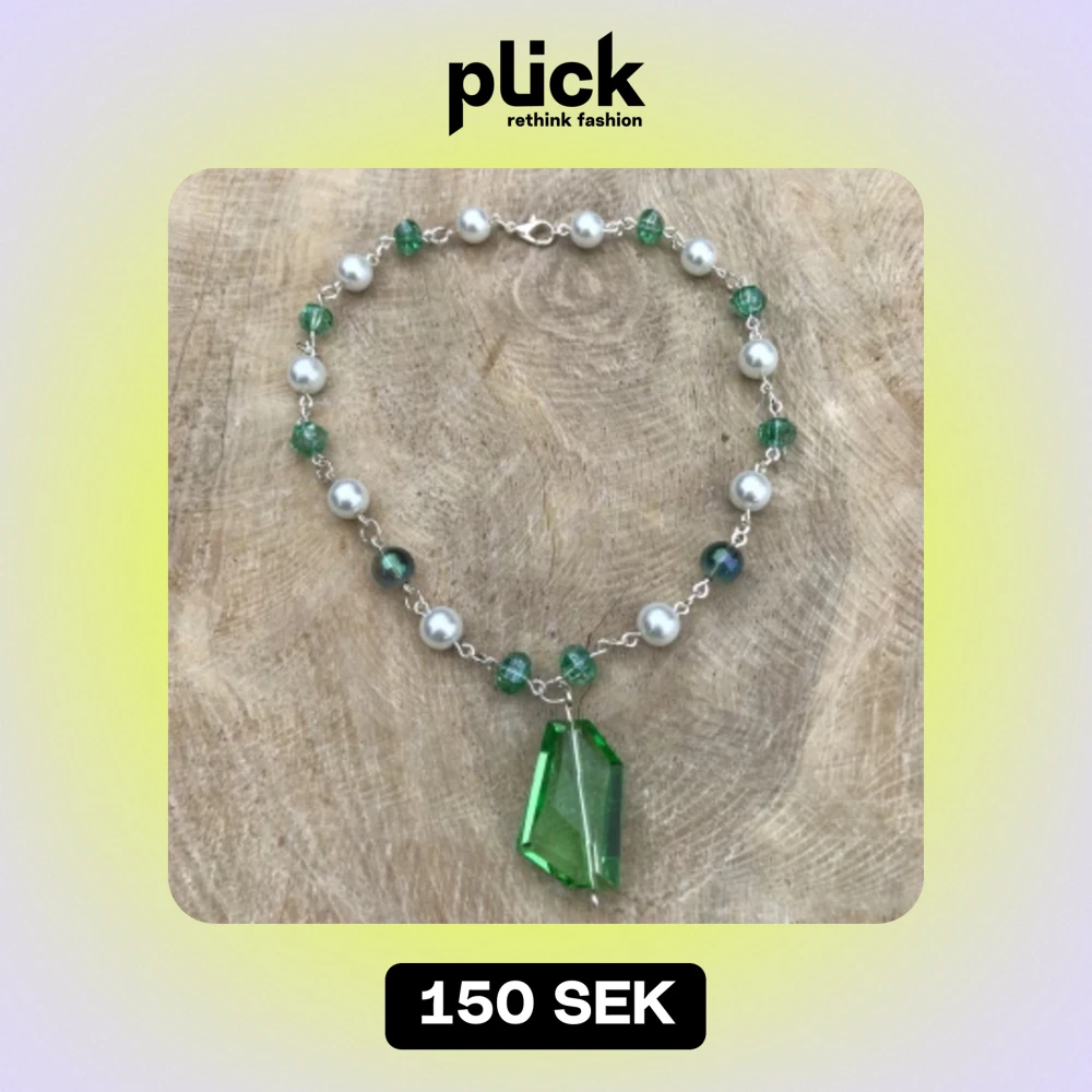 Grönt kristall halsband med glaspärlor. Matchande örhängen kan göras för 50kr extra🌿Storleken kan förstoras