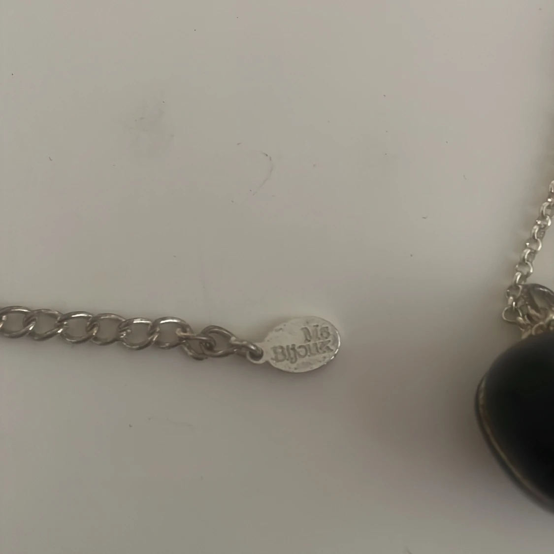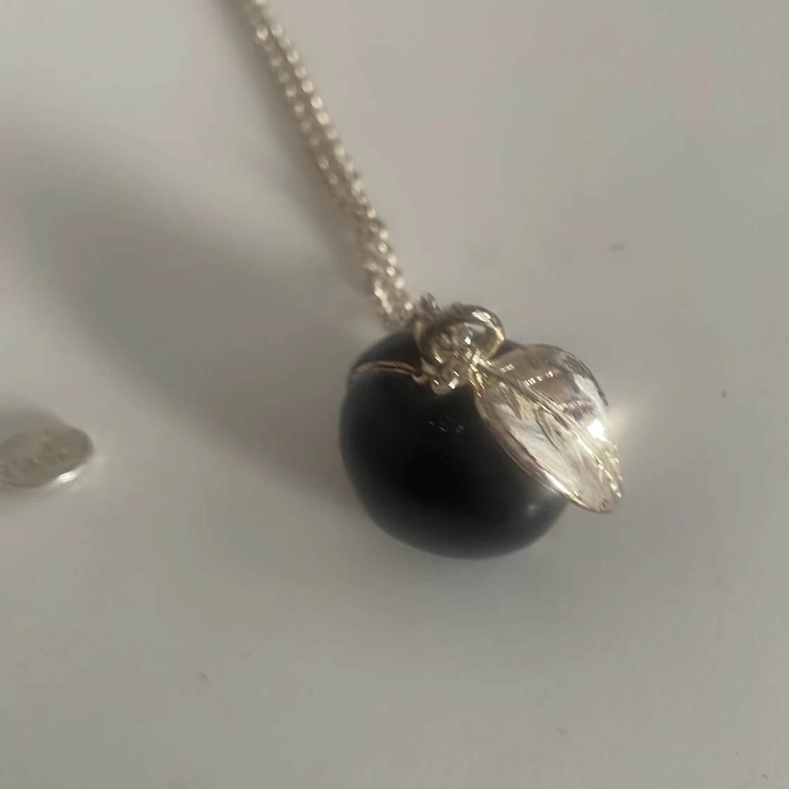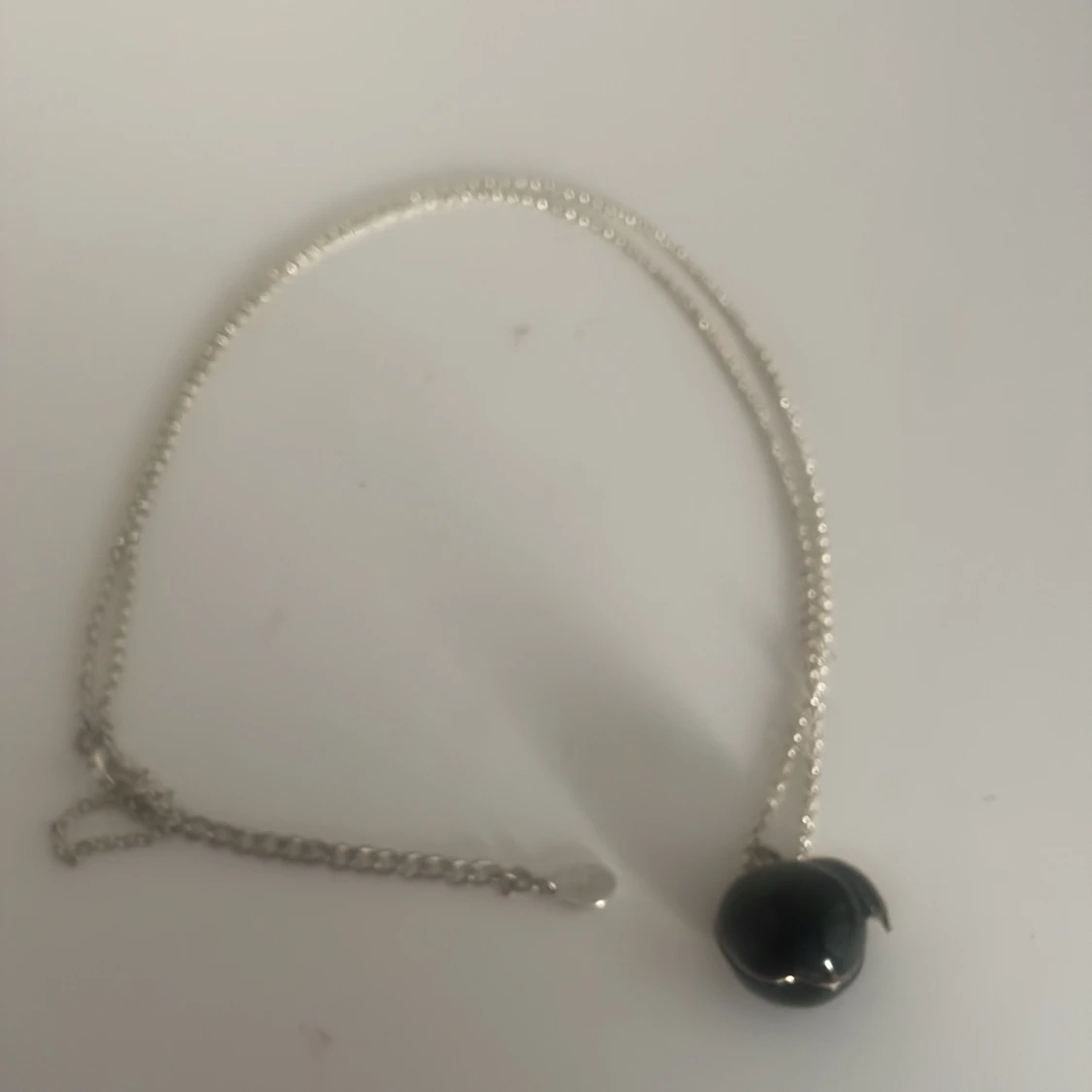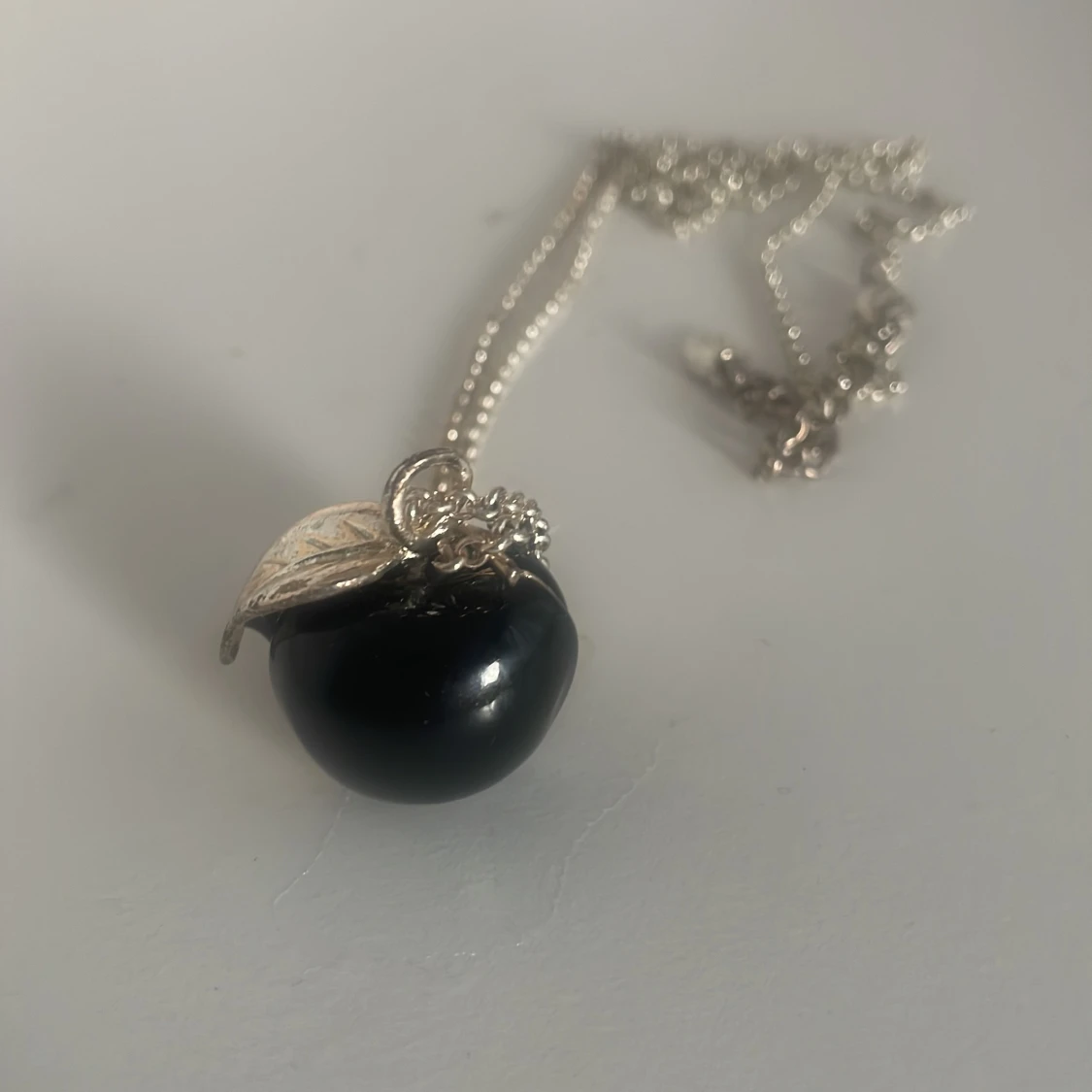 Snyggt silverhalsband från Bijou med ett svart pärlhänge. Hänget har en fin äppelhäge vilket ger en elegant touch. Perfekt för både vardag och fest. Kedjan är tunn och stilren, vilket gör att hänget verkligen står ut. Ett måste för smyckesälskare!
