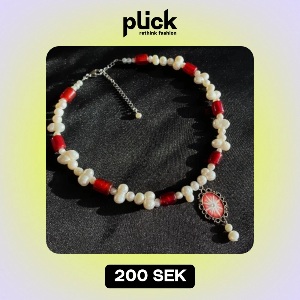 Halsband gjort av glaspärlor & sötvattenspärlor, med en handmålad berlock❤️✨ reglerbar längd 38-44.5cm Kika in min instagram @flyingladybugz för mer smycken💗🐞