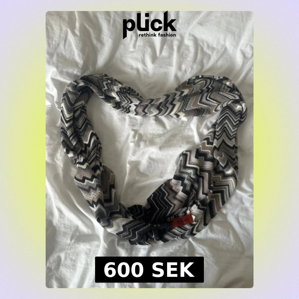 Snygg halsduk från Missoni med ikoniskt zigzag-mönster i svart, grått, beige och vitt. Halsduken är stickad och har en mjuk känsla, perfekt att slänga över axlarna för en cool och trendig look. Passar dig som gillar statement-accessoarer. Längd: ca 190cm Bredd: ca 40cm