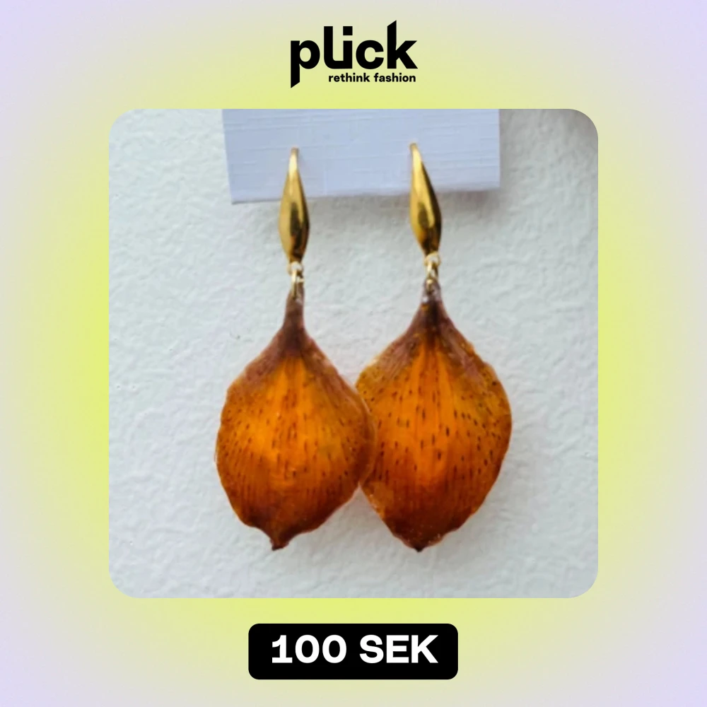 Find handgjorda örhängen med blad från brandlilja och resin. Guldfärgade detaljer. Nickeltestade krokar 💕 Fler smycken finns på min instagram @flowerjoy.se 💕