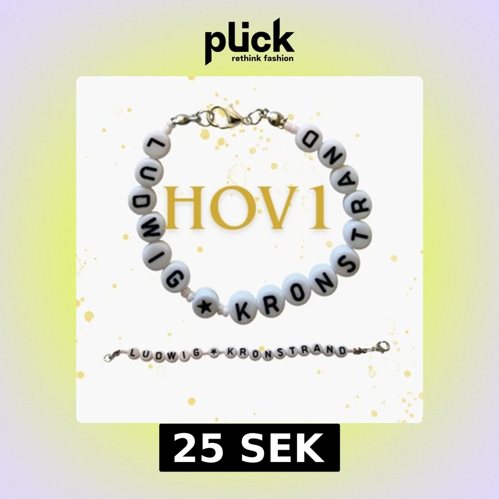 Pärlarmband med vita runda bokstavspärlor som bildar namnet på Hov1:s bandmedlem 'LUDWIG KRONSTRAND'. Armbandet är gjort av elastisk tråd och metallspänne. Perfekt accessoar för dig som gillar personliga smycken och Hov1. Anpassar längd, namn/ord, färger med mera utefter dina önskemål. Se mina övriga annonser och passa på att få rabatt vid köp av flera varor samtidigt. Obs!!! Accepterar ej prutande. 25 kr är ett fast pris.
