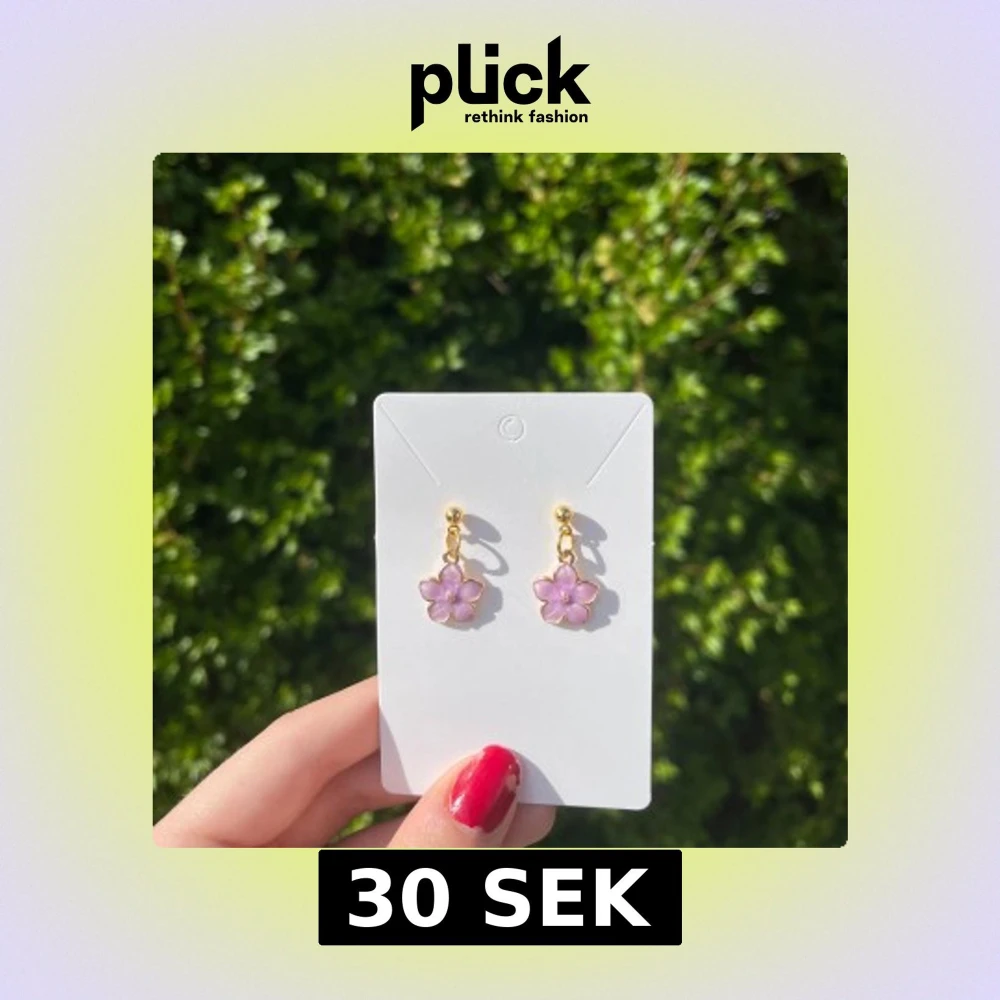 Guldfärgade örhängen med lila blommor. Nickelfria och handgjorda – skonsamma för känsliga öron. 🤍 Perfekt att ge som present eller behålla själv!!