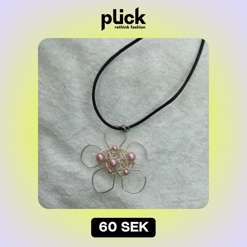 Handgjort halsband i ståltråd med rosa pärlor med justerbar längd
