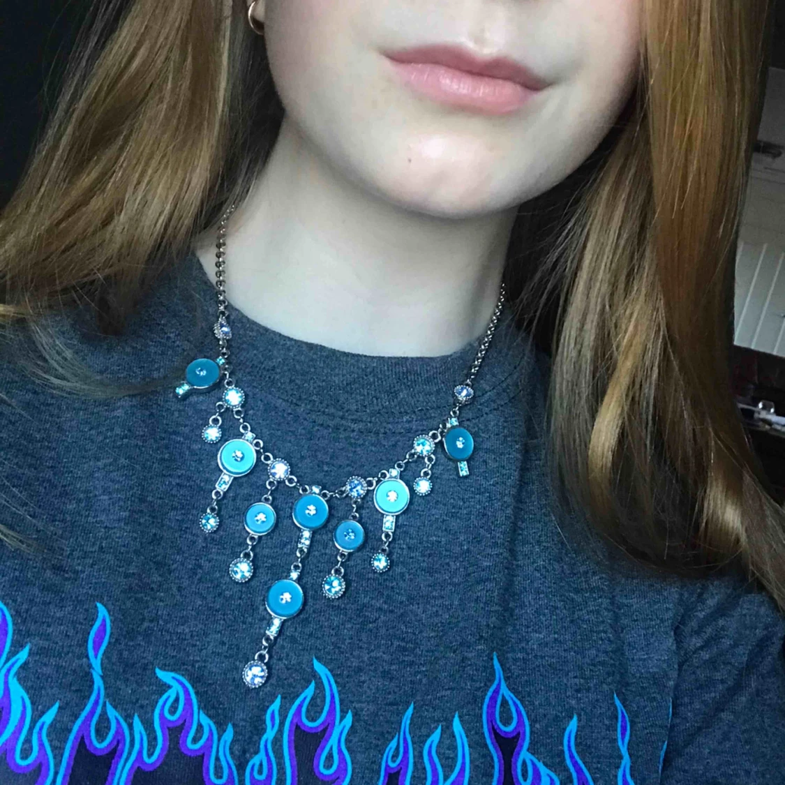 Jätte fint blått retro halsband med matchande öronhängen 🥰