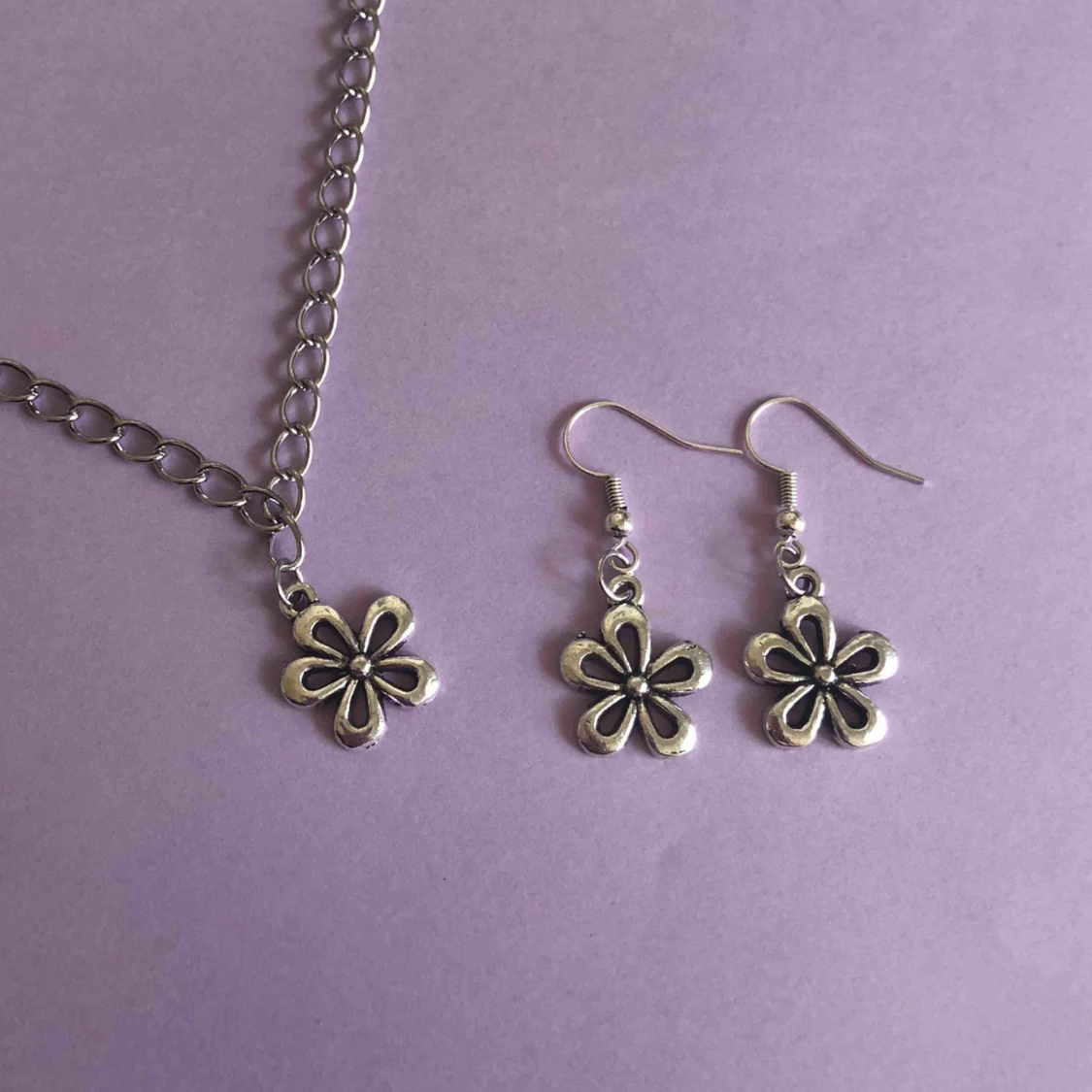 Säljer dessa handgjorda örhängen och halsband! 90 kr för ett par örhängen och ett halsband, eller 50 kr för antingen ett halsband eller ett par örhängen🌸🌹🌼
