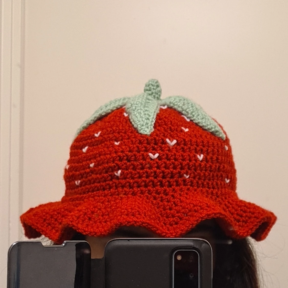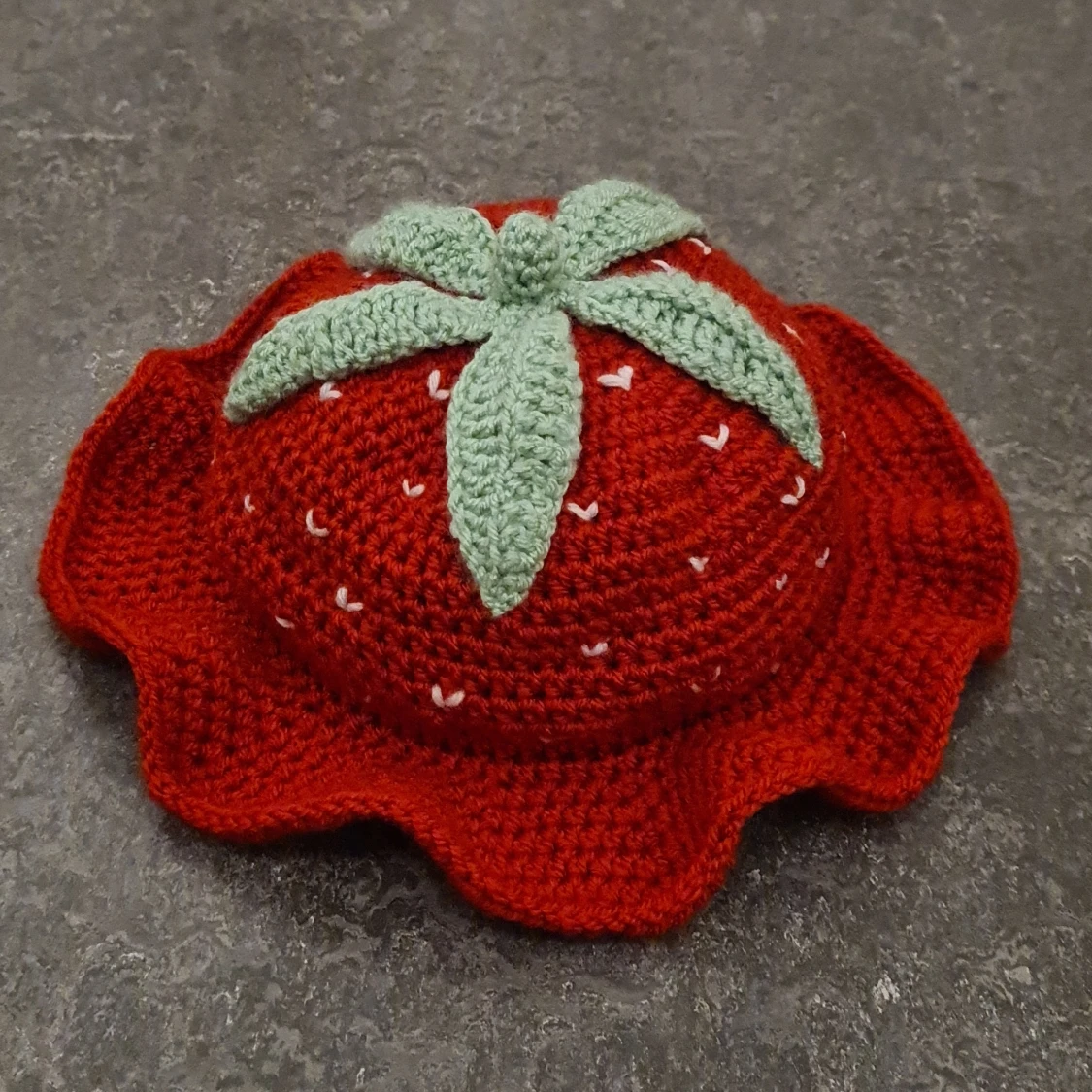 Jag virkar en jordgubbshatt till dig, det är bara att kontakta mig, så diskuterar vi eventuella önskemål. Hatten på bilderna är virkad av mig. 🍓Köparen står för frakten och jag skickar alltid bildbevis! 🍓