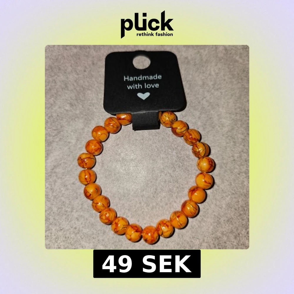 Unikt armband med runda pärlor i orange med marmorerade detaljer. Elastisk tråd gör det enkelt att ta på och av. Perfekt accessoar för dig som vill sticka ut med färg och personlighet. Ca 16cm