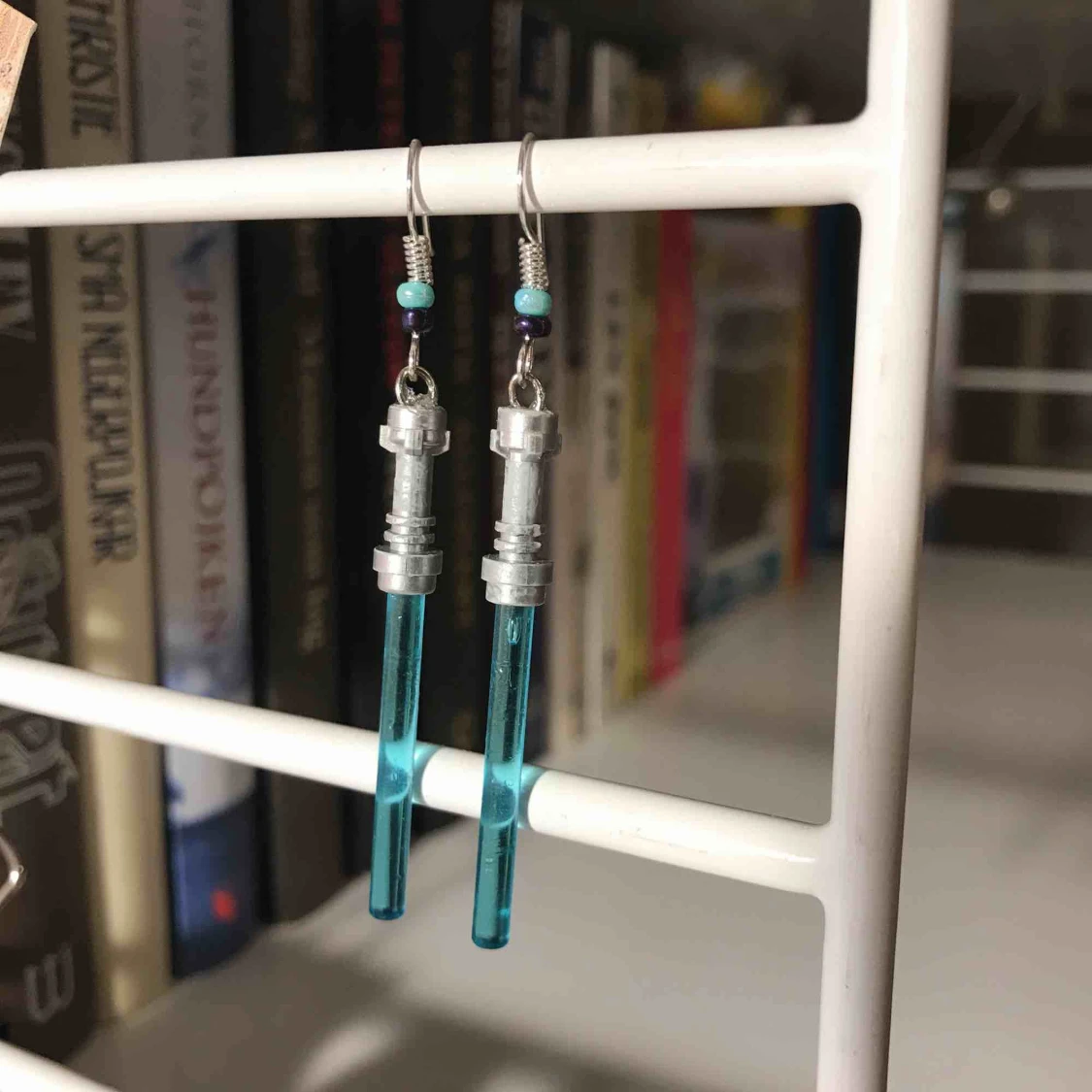 Lego star wars lasersvärd-örhängen! Handgjorda av mig, så definitivt unika!:D frakt kostar 9kr, annars kan jag mötas i Stockholm