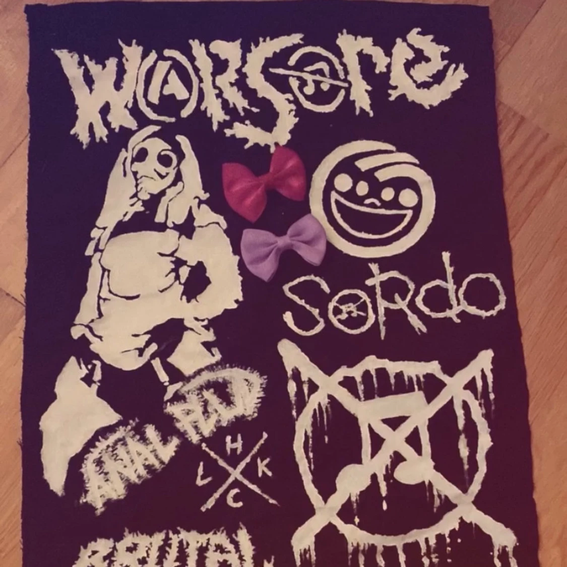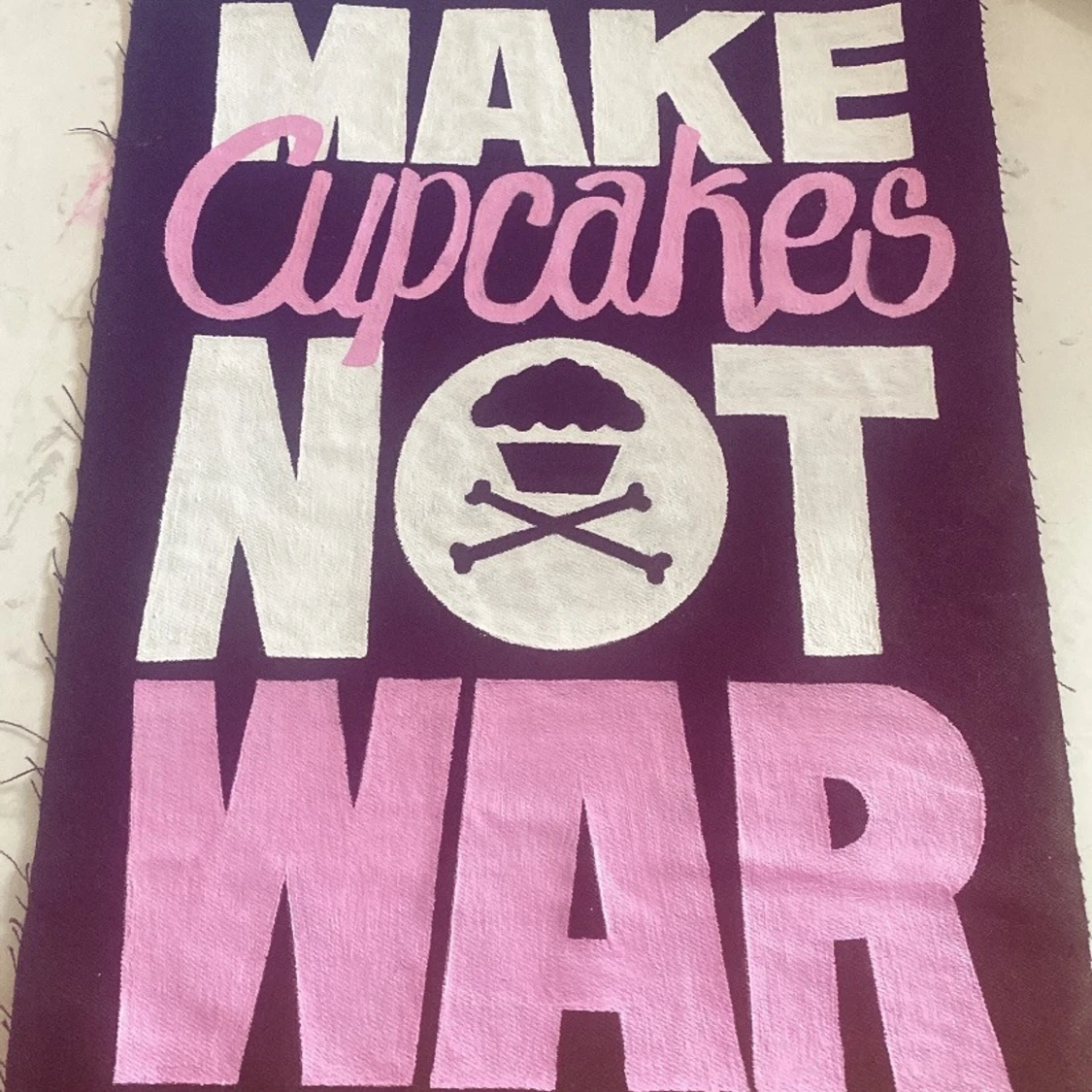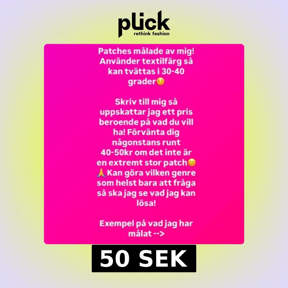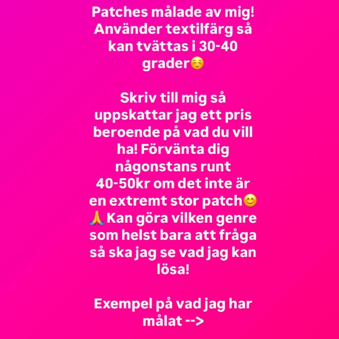 Unika handmålade patches som kan tvättas i 30-40 grader. Designen inkluderar olika genrer och stilar, från bandloggor till kreativa slogans som 'Make Cupcakes Not War'. Perfekt för att ge dina kläder en personlig touch.