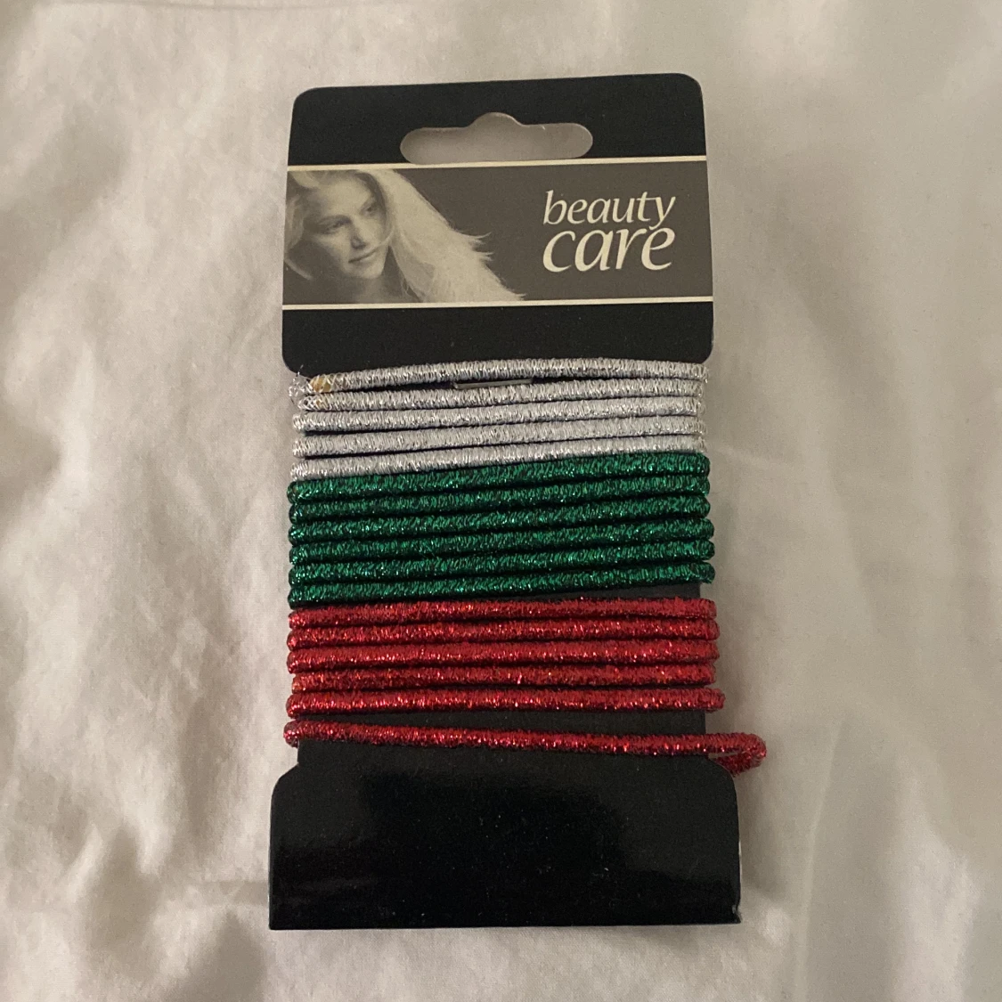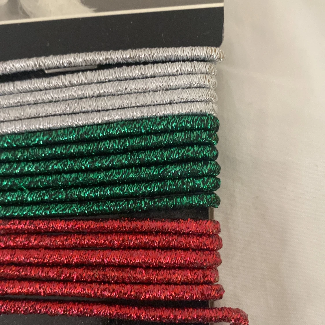 Glittriga hårsnoddar i röd, silver och grön färg. Helt oanvänd! Säljes billigt och kommer att slängas snart, så köp redan nu🩷