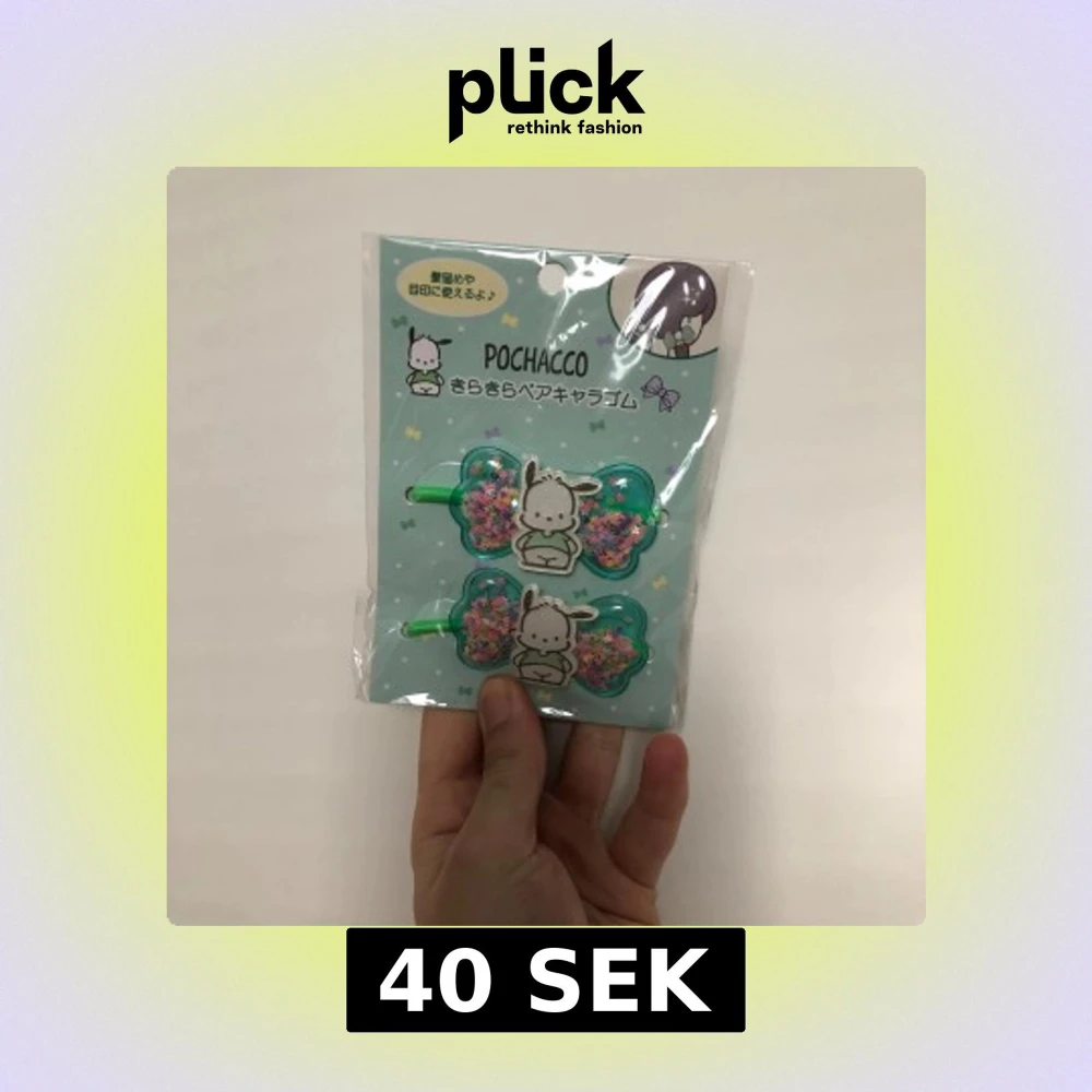 Hårsnoddar med Pochacco och ”rosetter” i plast fyllda med stjärnor! OÖPPNADE