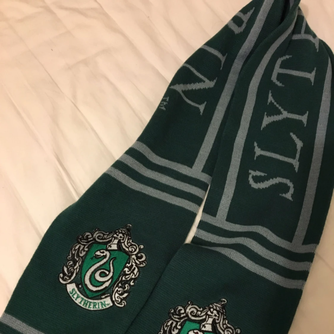 Oanvänd Slytherin-halsduk, köpt på Harry Potter-studion i London!