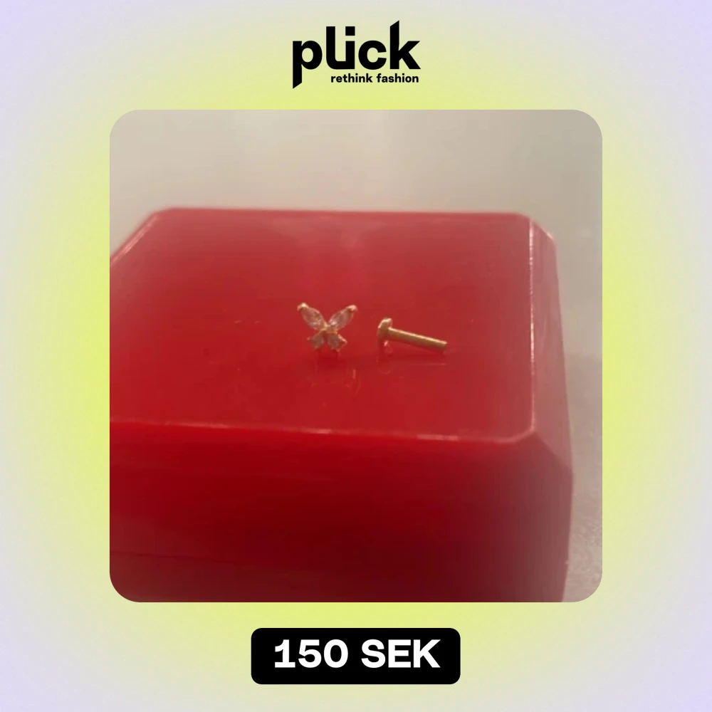 Säljer denna helix också få jag inte är en guld tjej. Helt ny. Piercingen är i guld men vingarna är i diamanter. Fick denna och blomman i present. Ny pris 199kr. Guldplatterade. Jätte bekväma att sova i. Har liknande i silver.