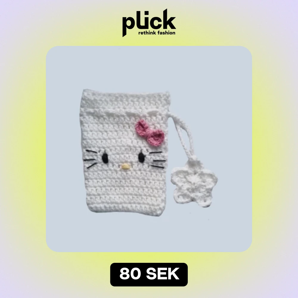 Hello kitty påse virkad av mig som man kan använda som neccesär, eller en påse med småsaker som man kan ha i sin väska, så att de är enklare att hitta.